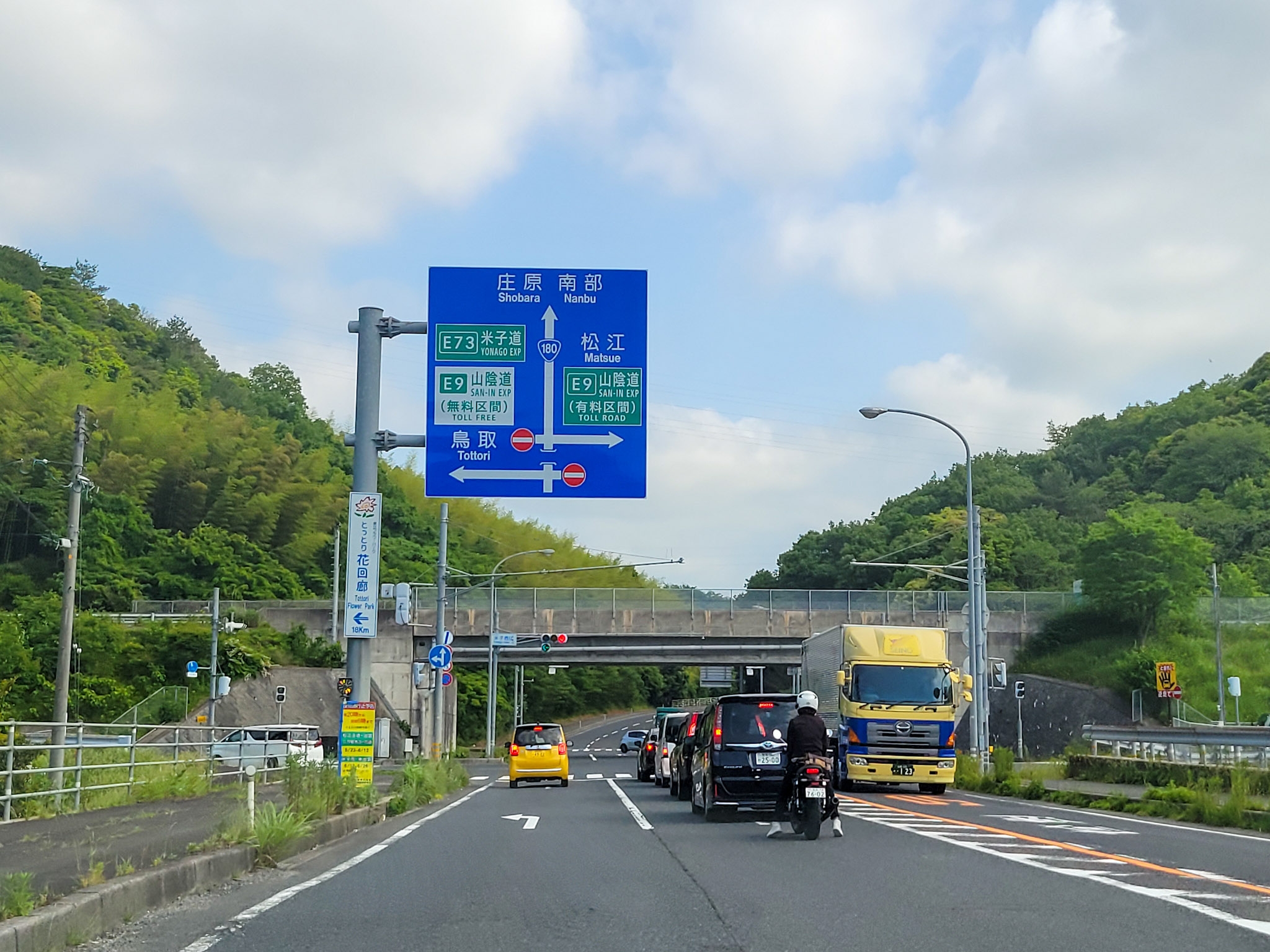 山陰道や鳥取道は1車線になるけど新しいので走りやすい。