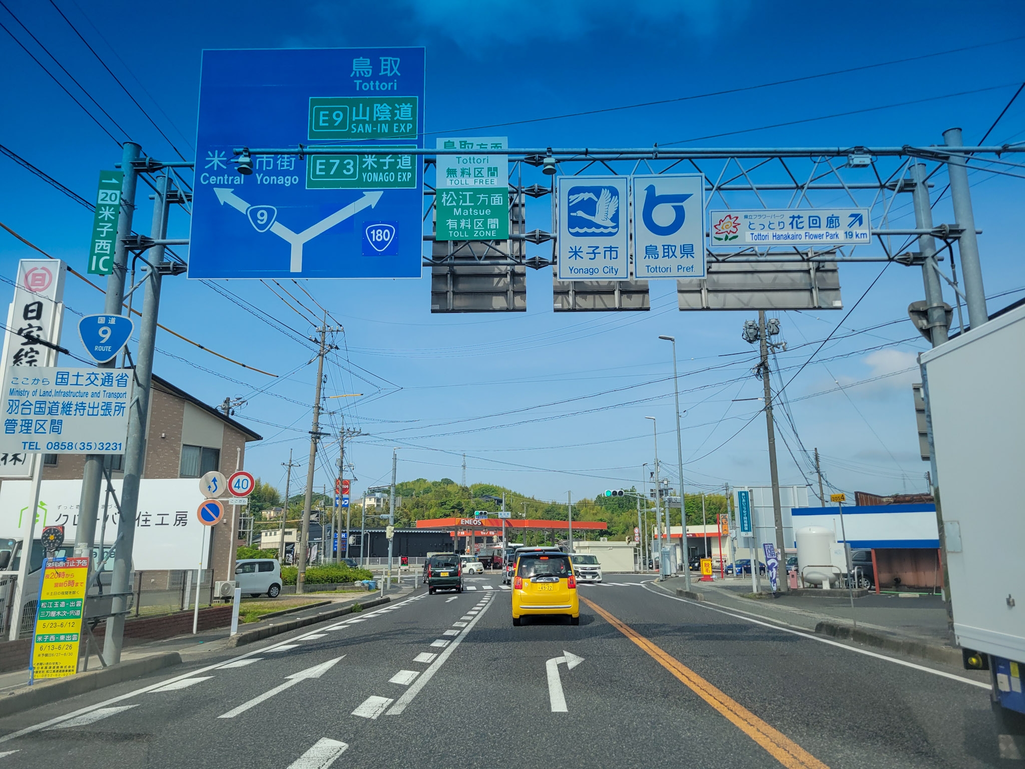 米子西ICから山陰道へ入るために、国道9号線へ出ます。