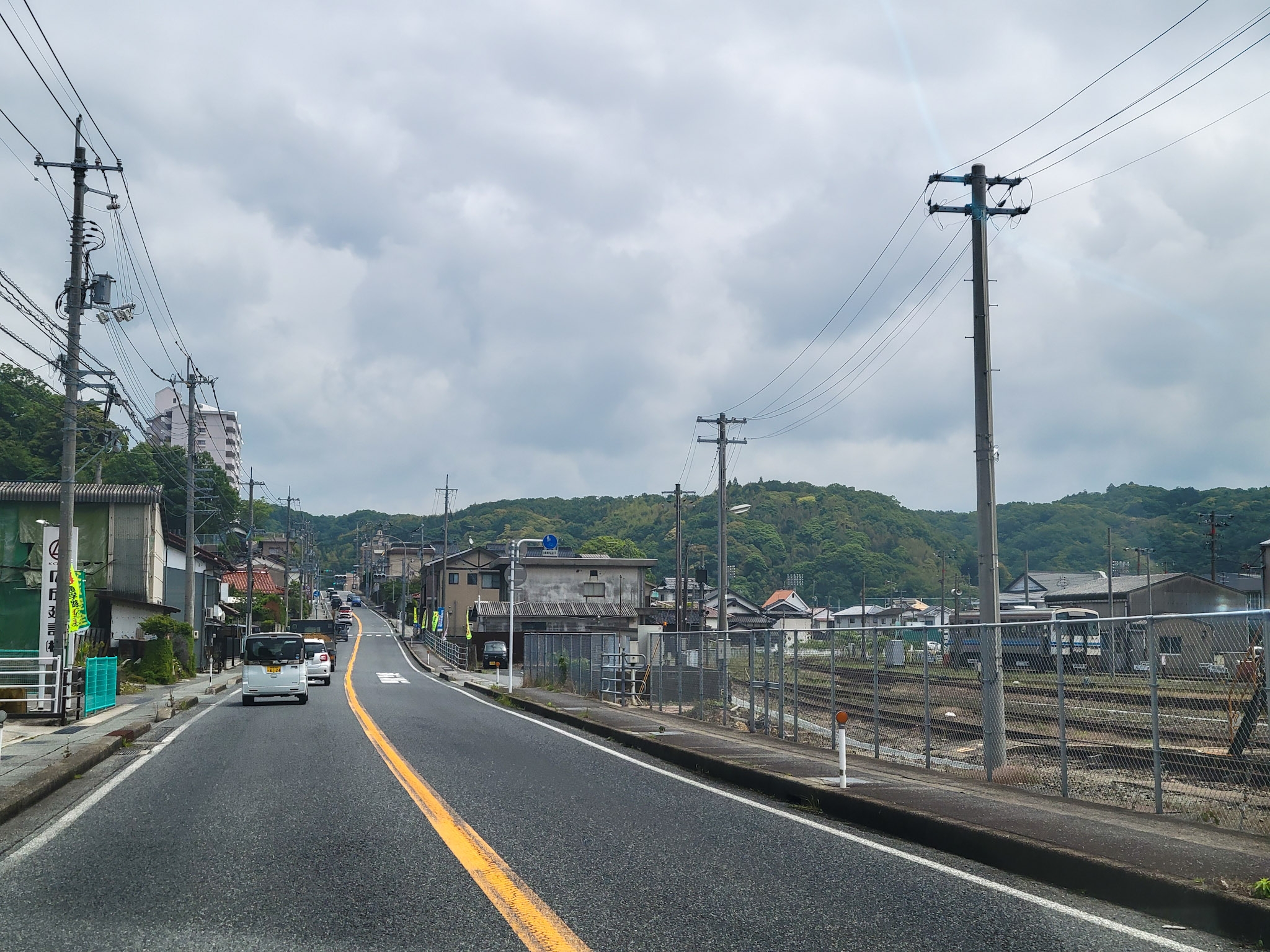 鉄道の非電化のローカル線なので、道路も急に交通量が減りました。