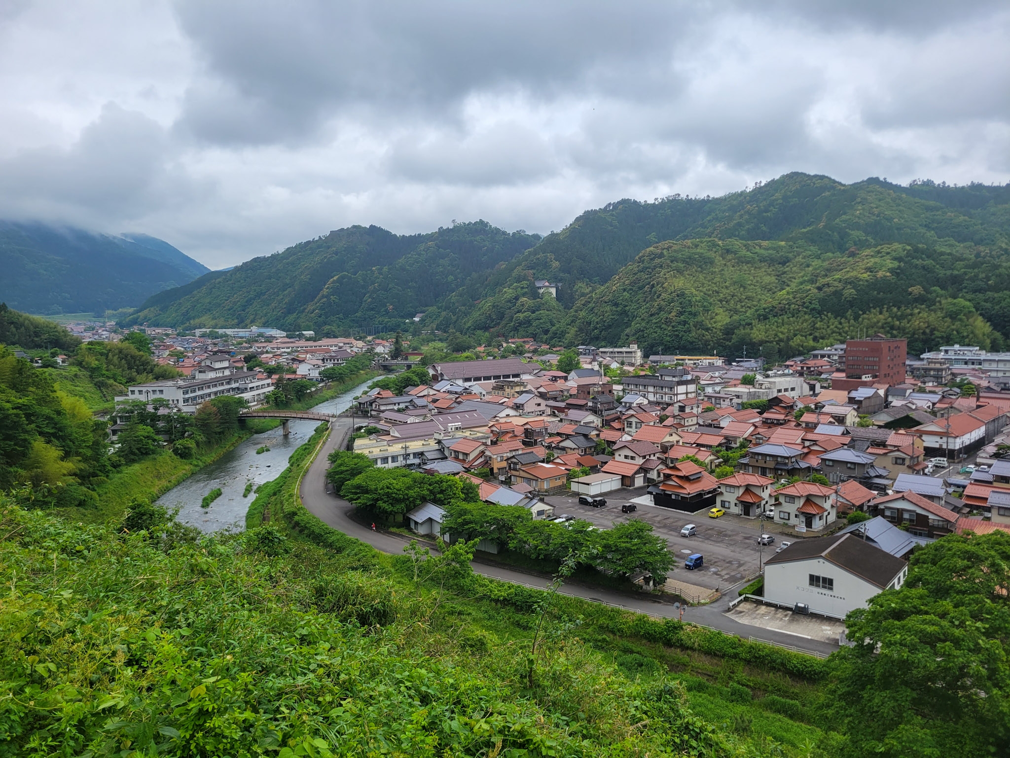 山に囲まれ、町中を川を流れ、とても静かでいい雰囲気ですね。