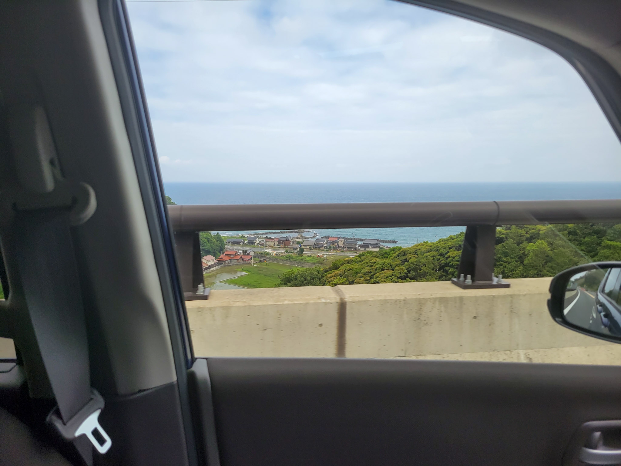 日本海を眺めながら、途中で海鮮のお昼ご飯を食べて、