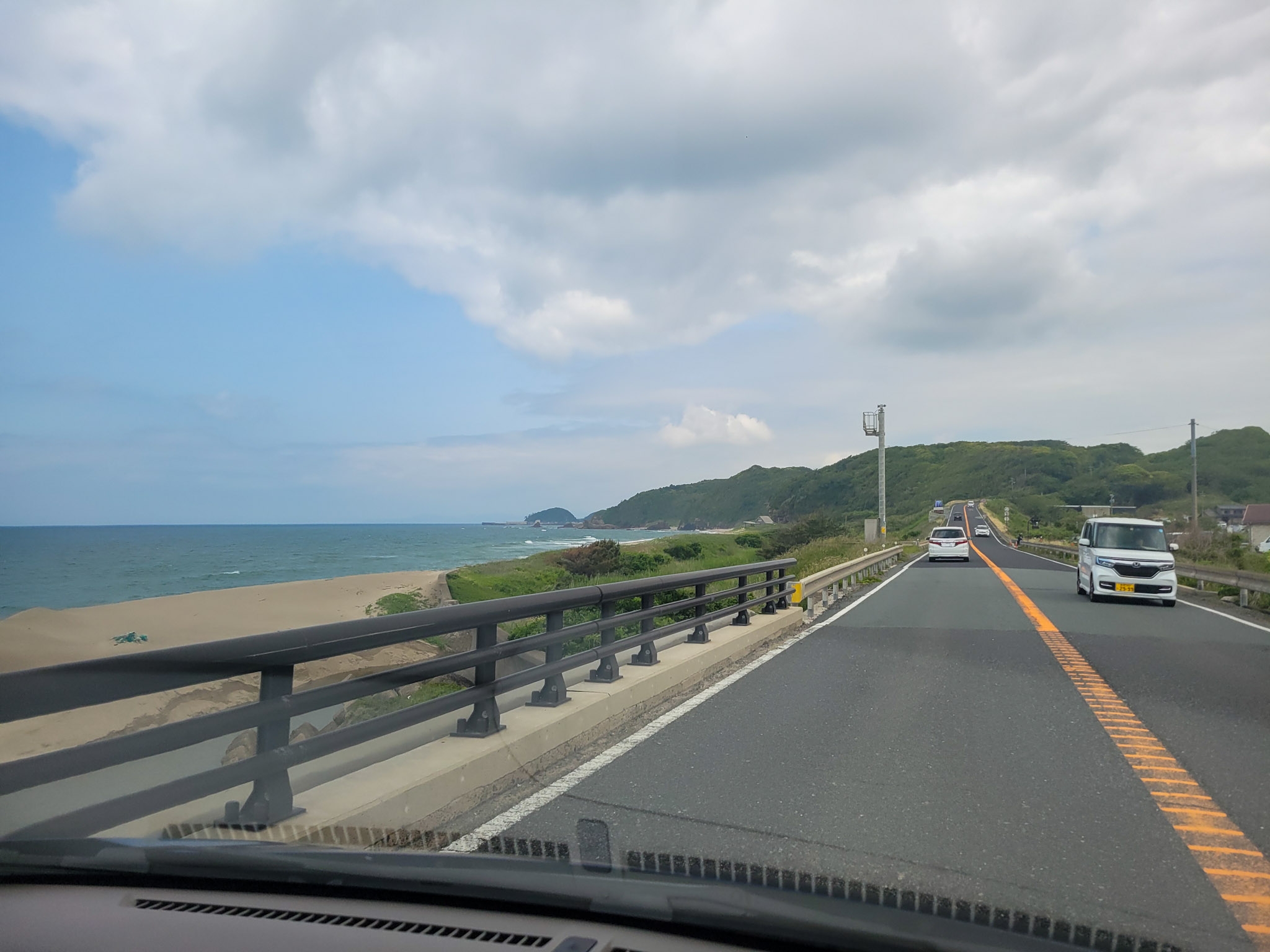 夏は穏やかですが、冬は荒れるので海沿いを走るのは大変かも。