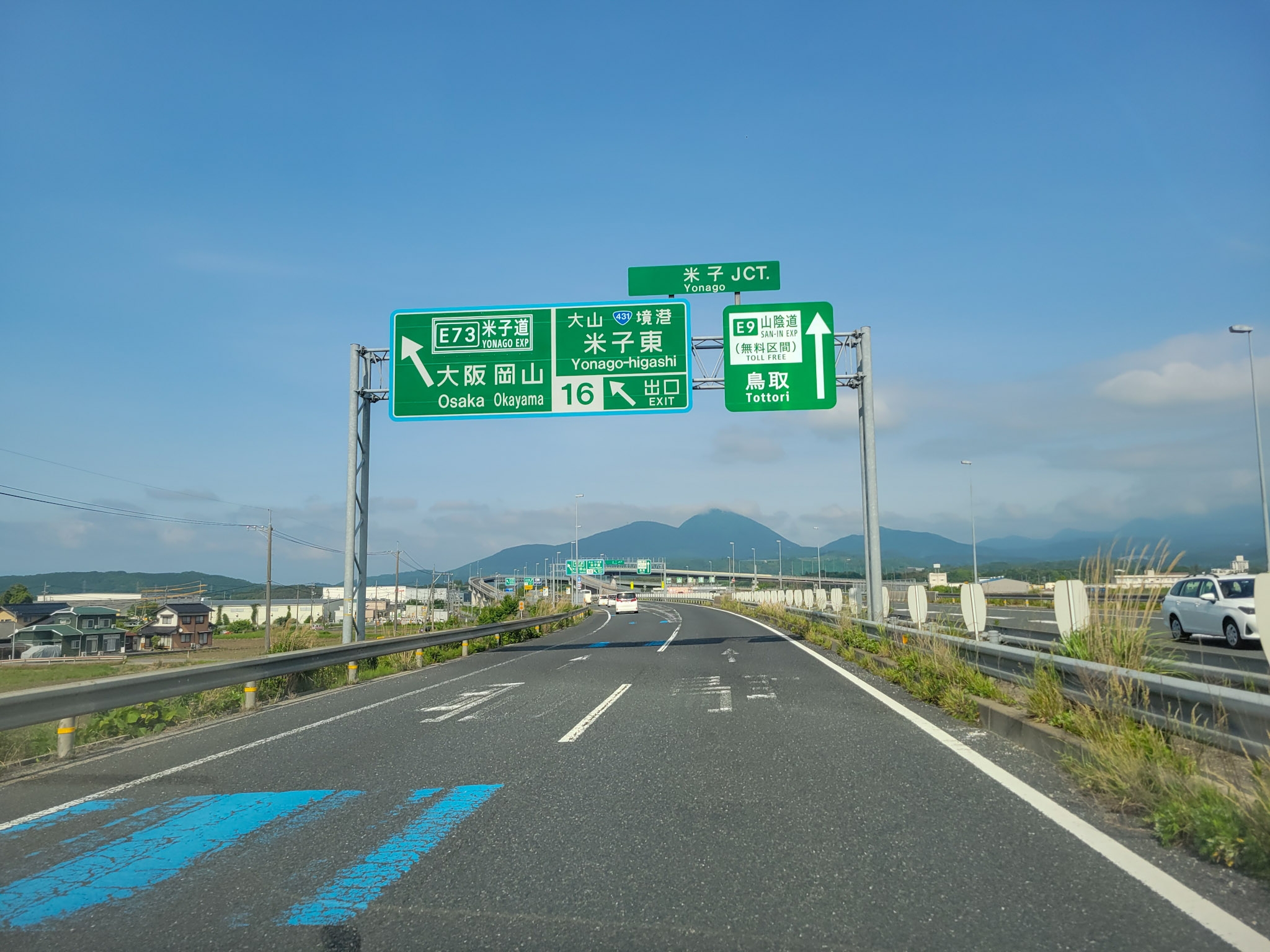 中国道方面へと向かう米子道は有料区間です。