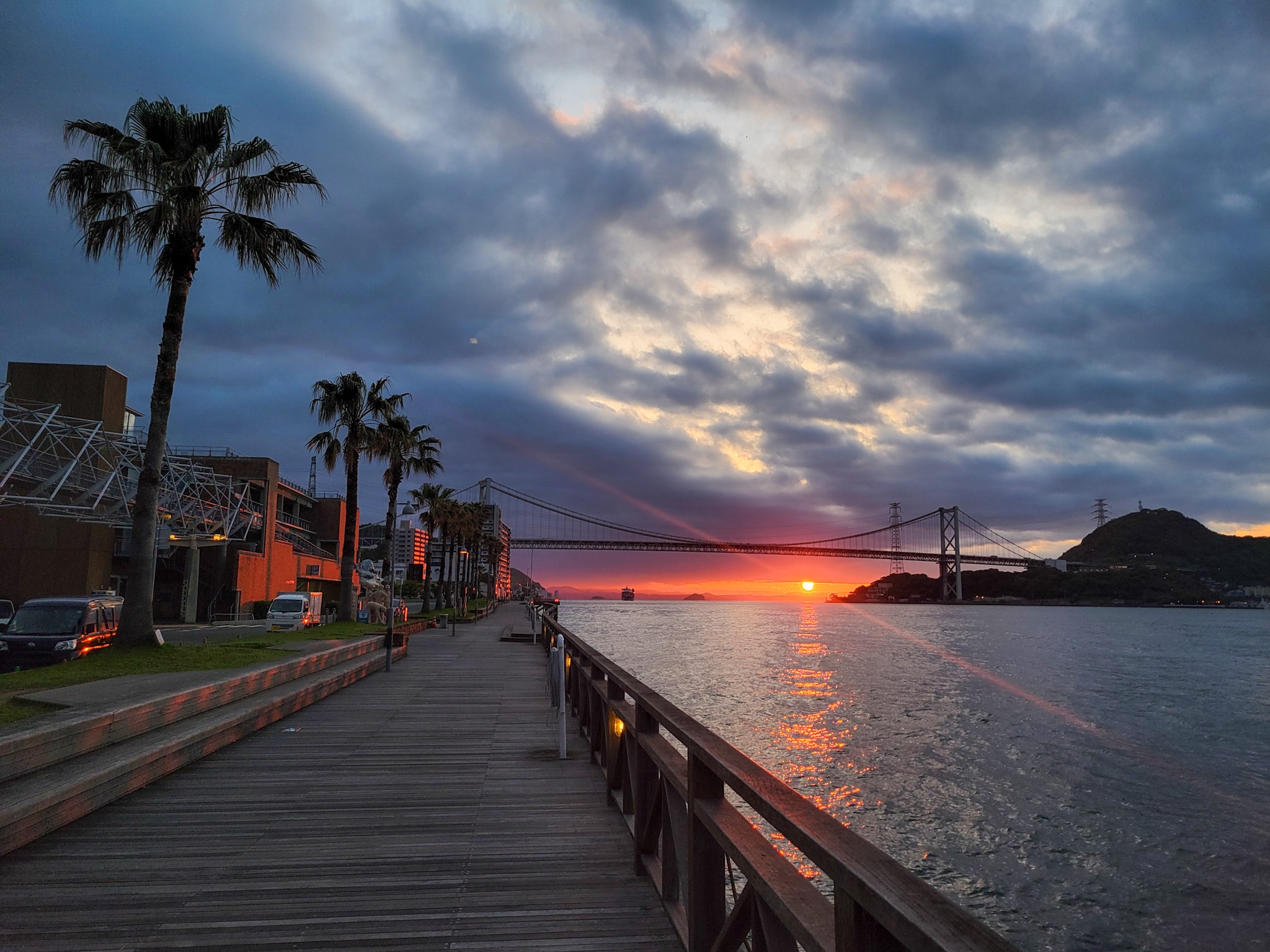 関門海峡の向こうから朝陽が!