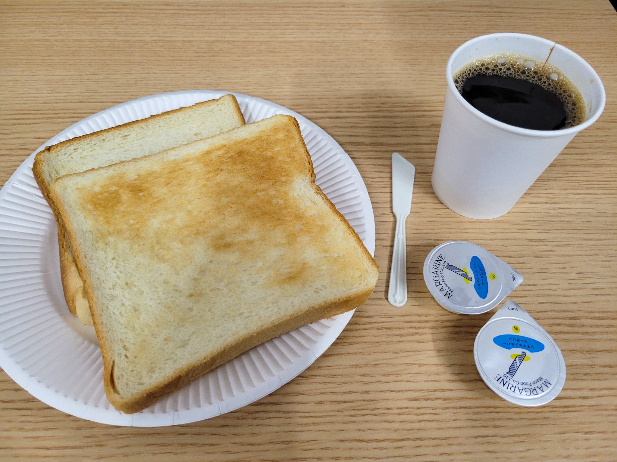 無料とはいっても、トーストとコーヒーのみです。
