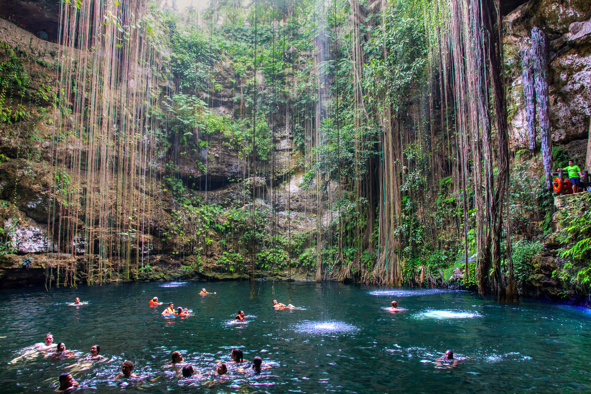 セノーテは泳ぐ人でごった返していて、神聖な雰囲気はすでになかった。