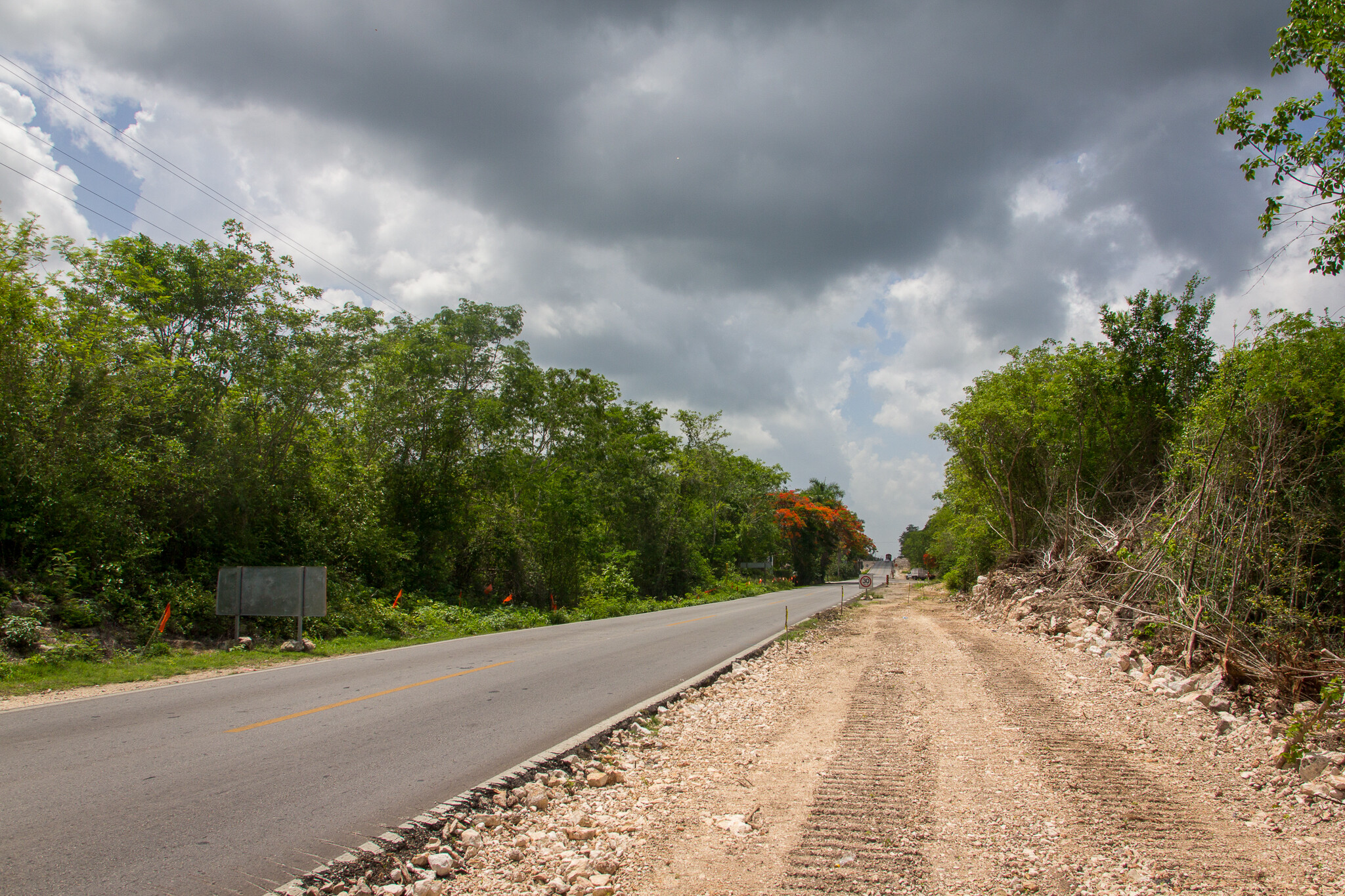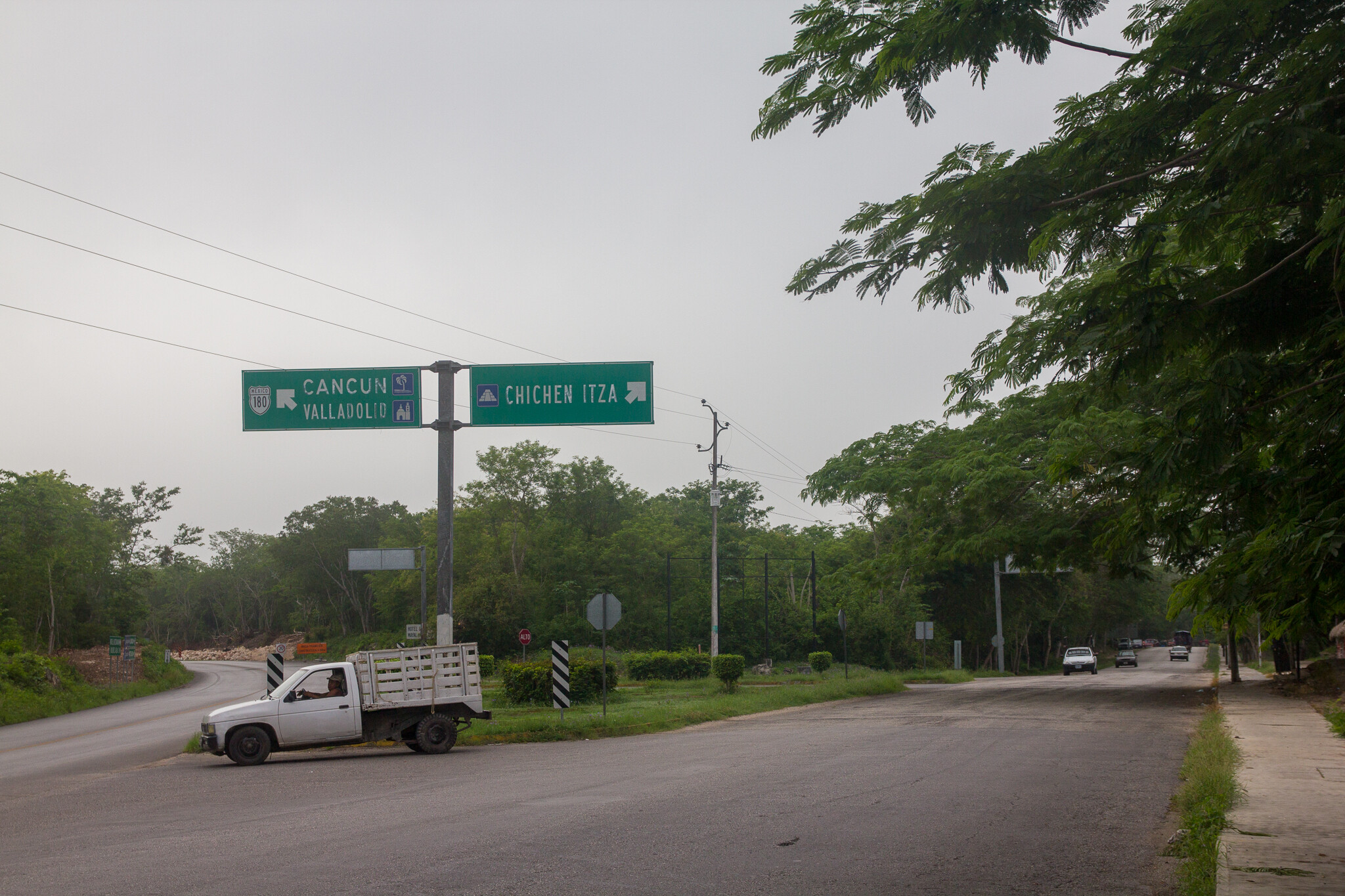 カンクンからの道は左側で、遺跡は右側に1キロのところにエントランス。