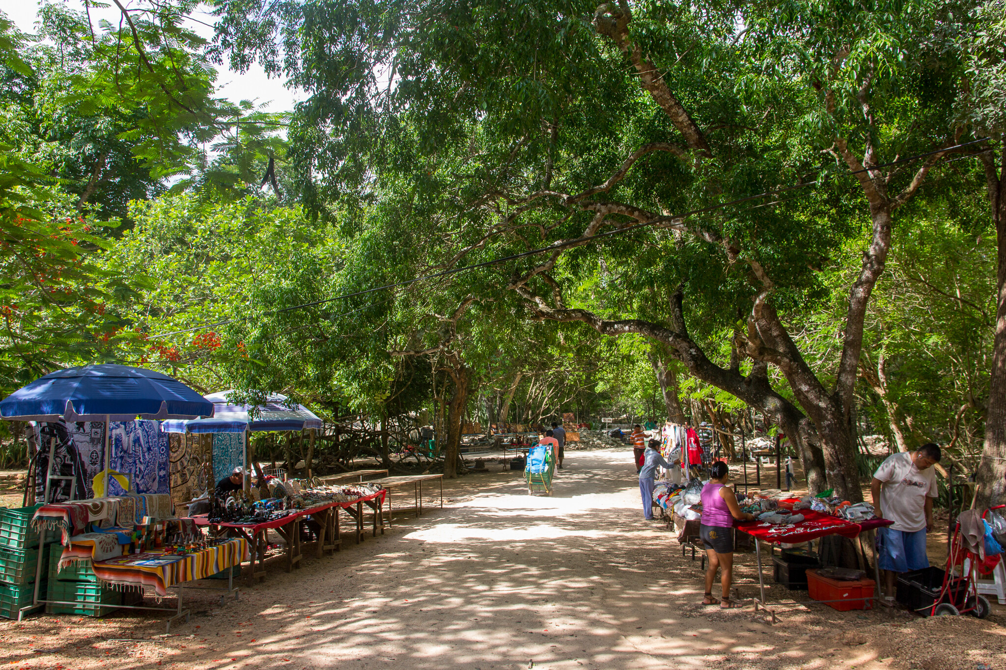 セノーテへ向かう道の両脇に土産物屋。