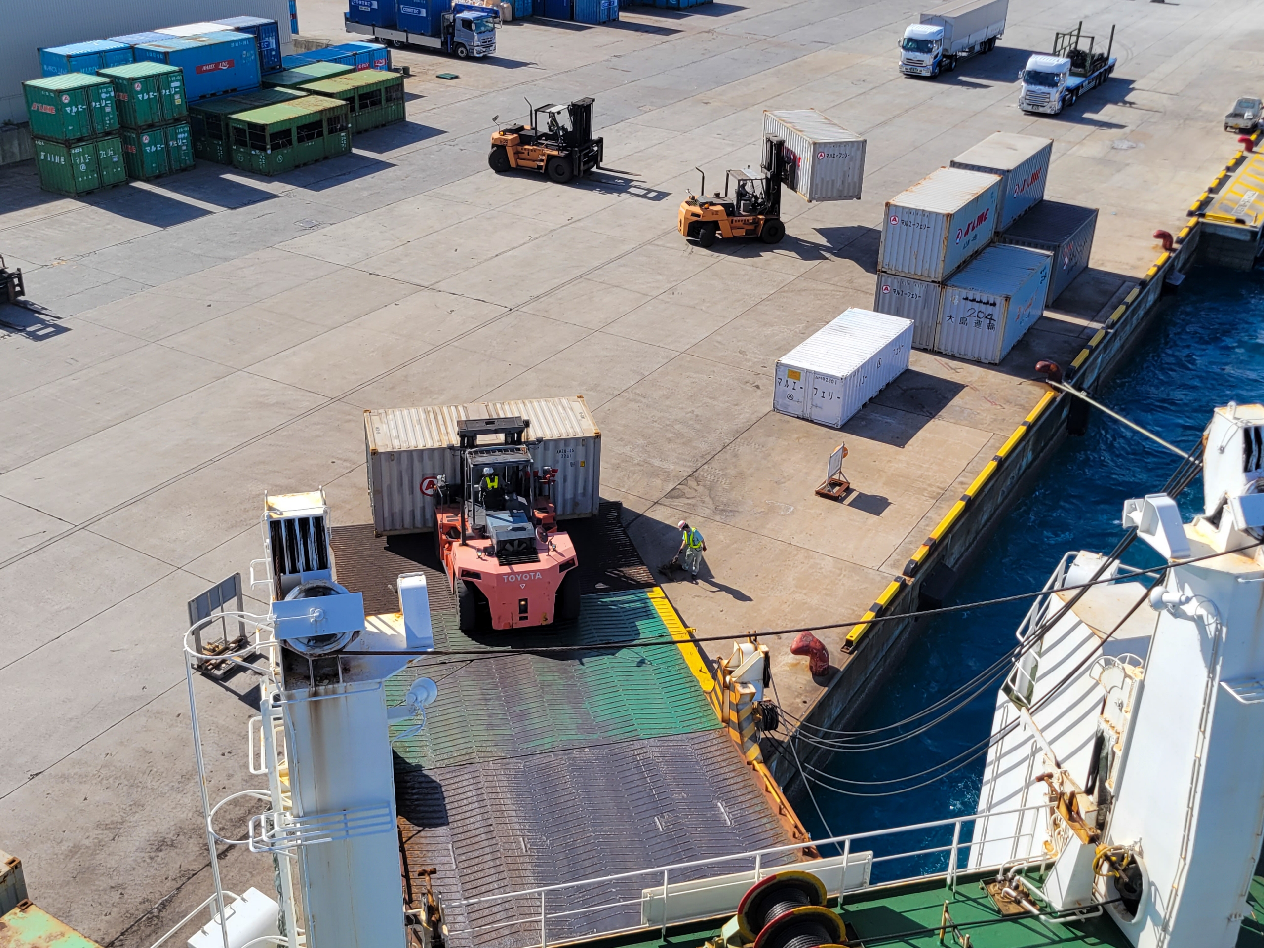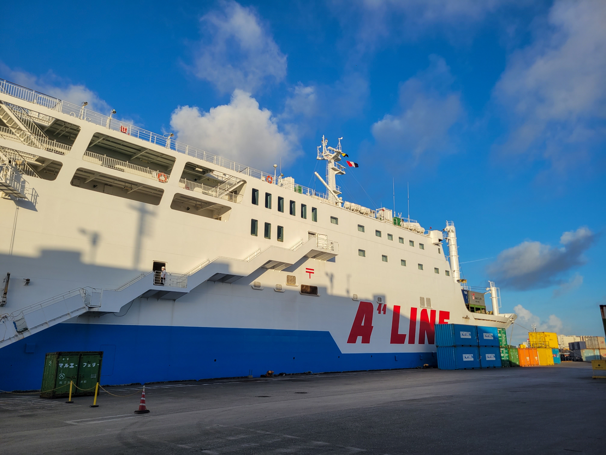 2008年就航の古いタイプで、マルエーの別便の波の上のほうが新しい。