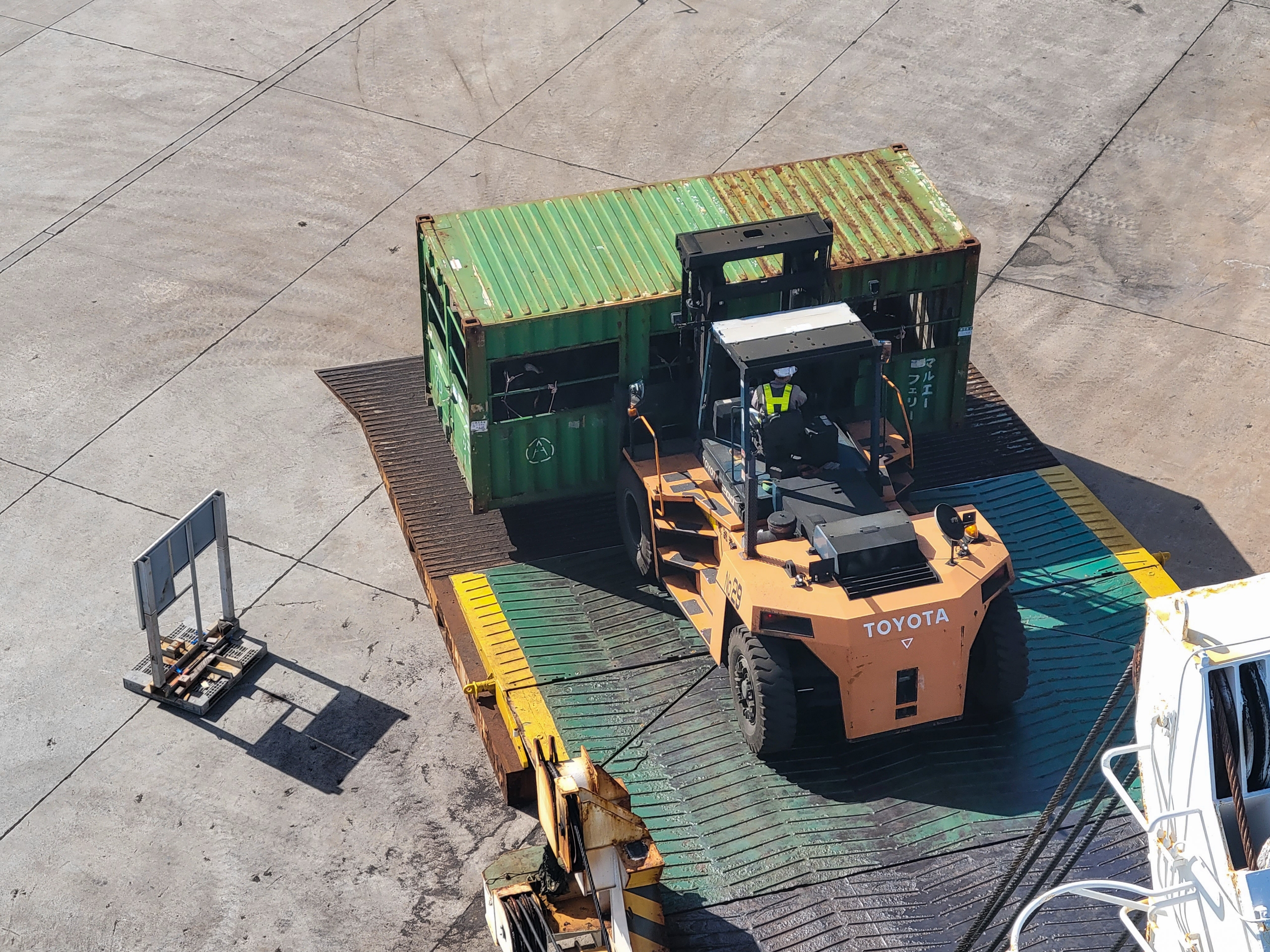 到着と同時に急ピッチで、荷物の積み上げが始まりました。