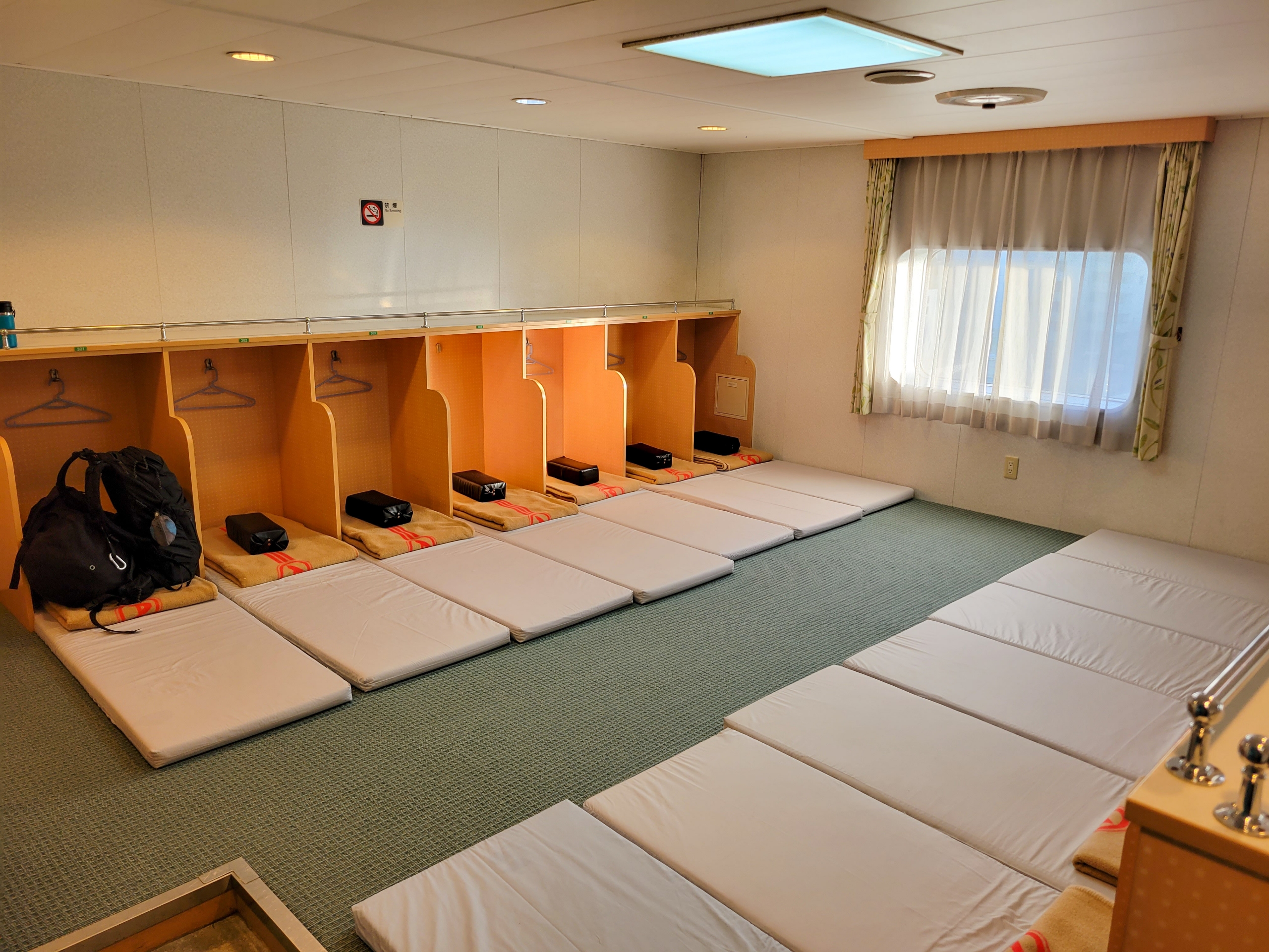 最近はこのような大部屋のニ等寝室のあるフェリーは減ってますね…