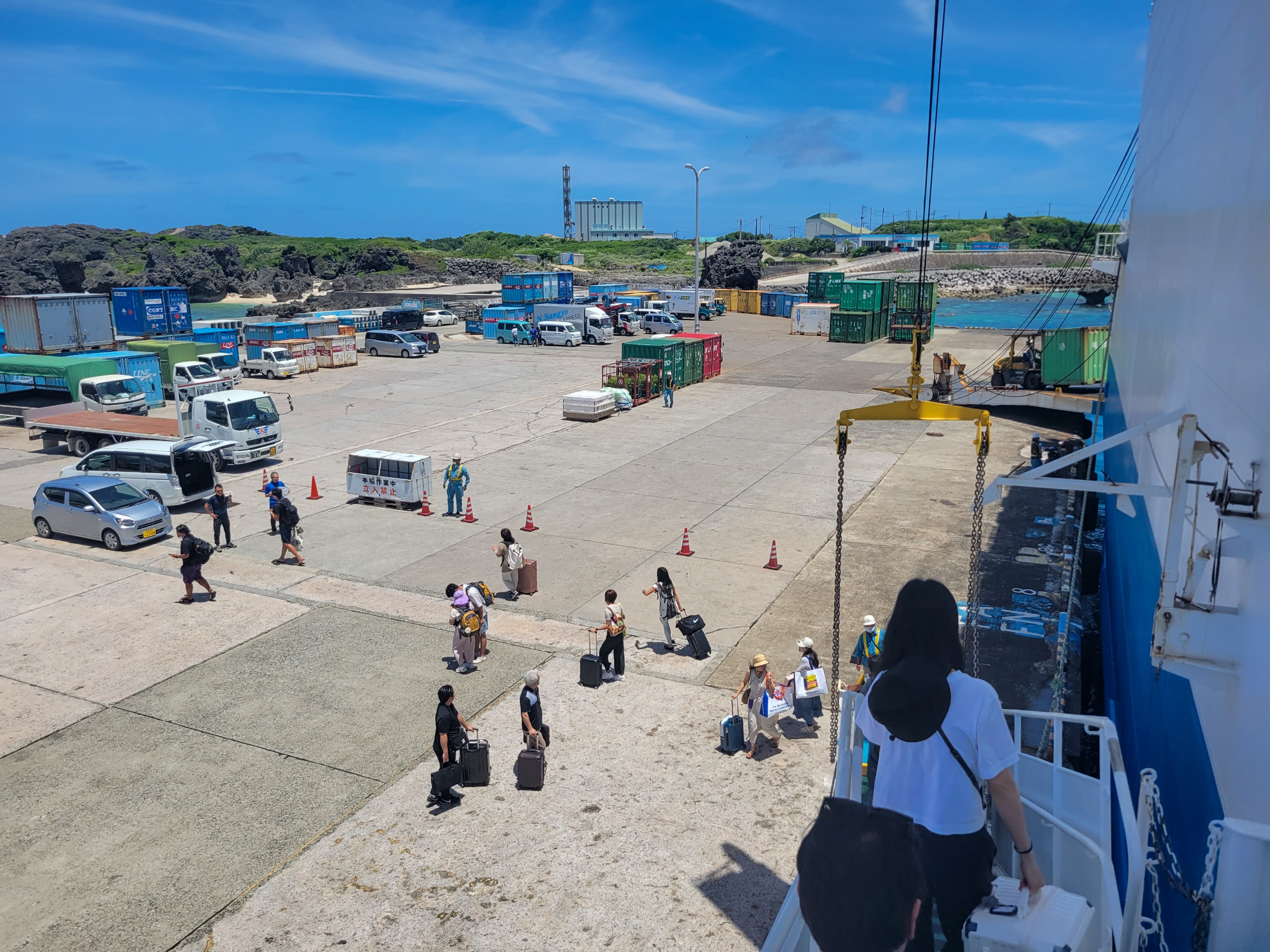 乗船と同じ吊り下げ階段を下って与論島へ。