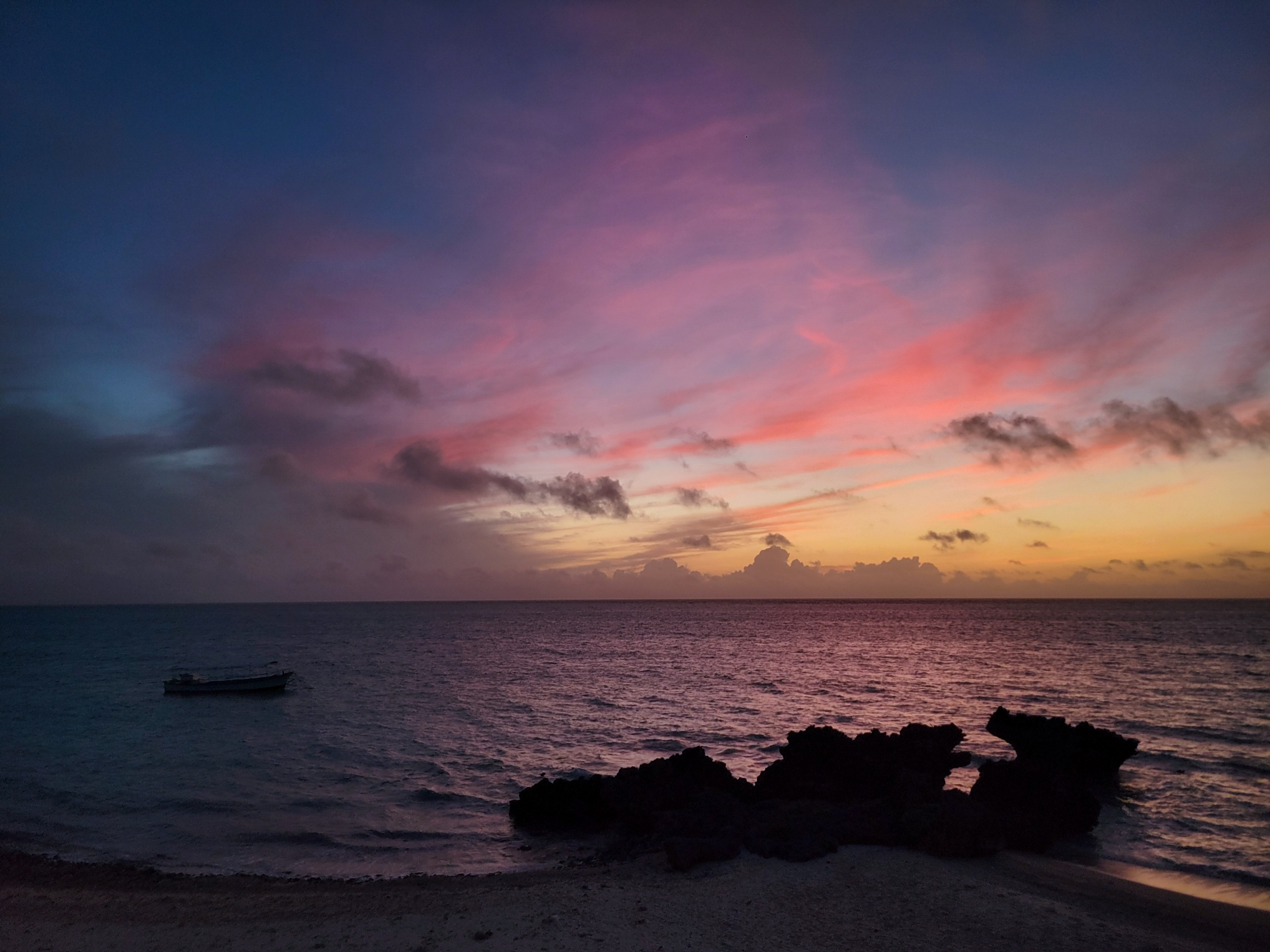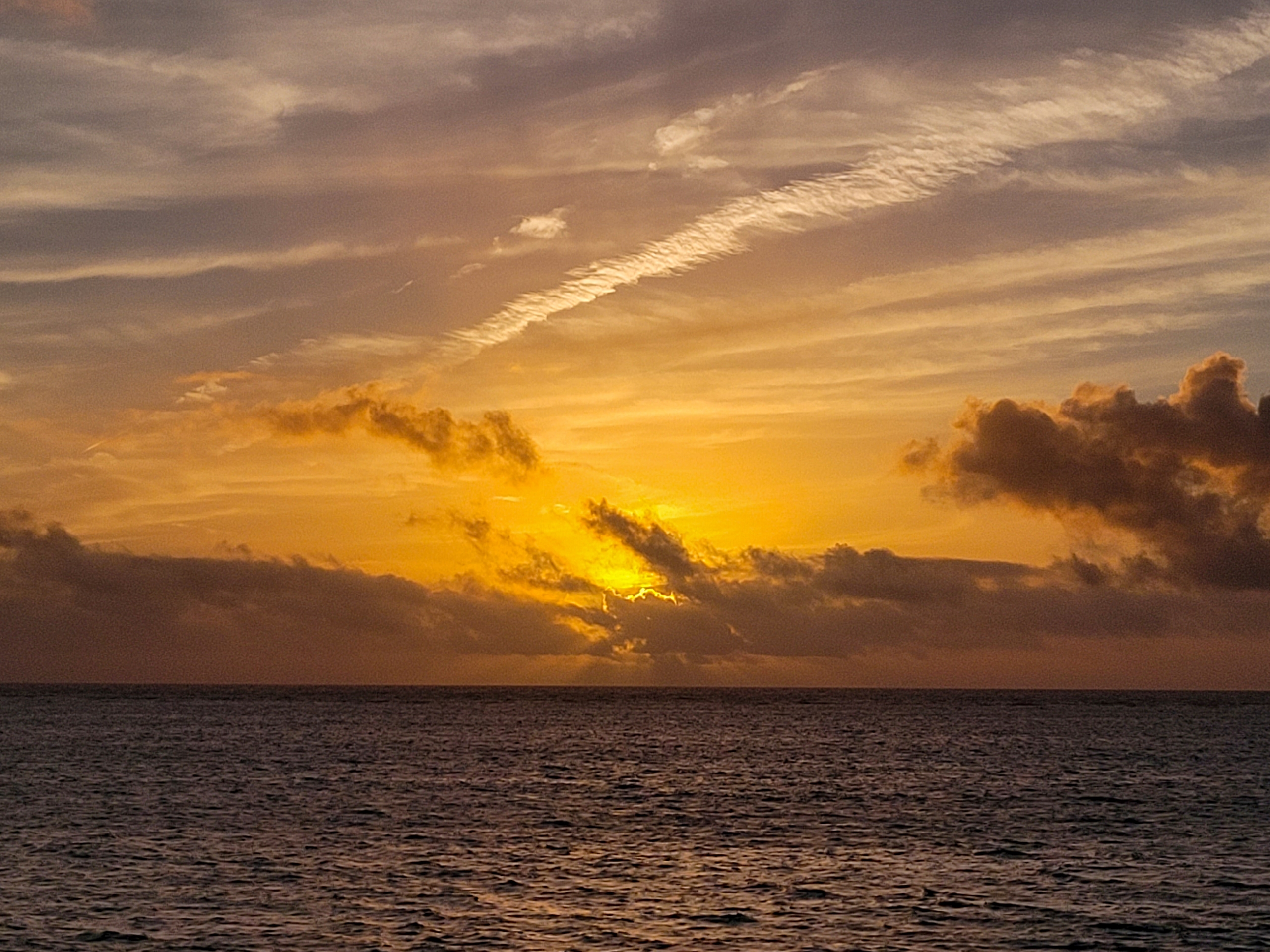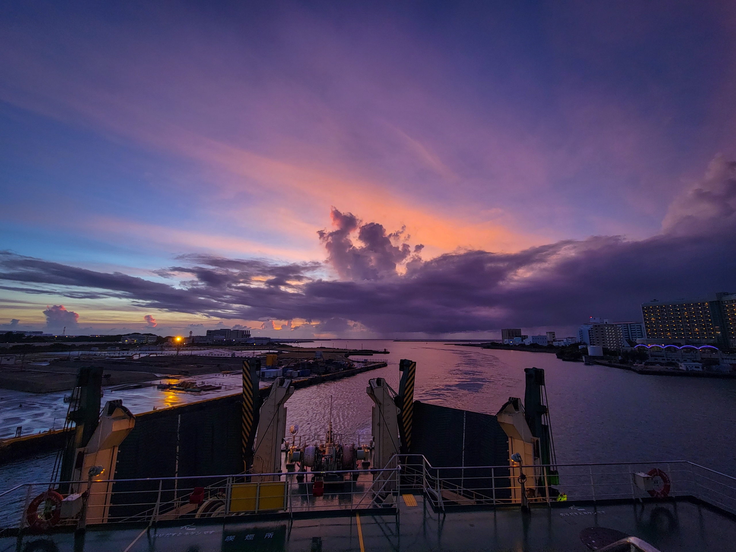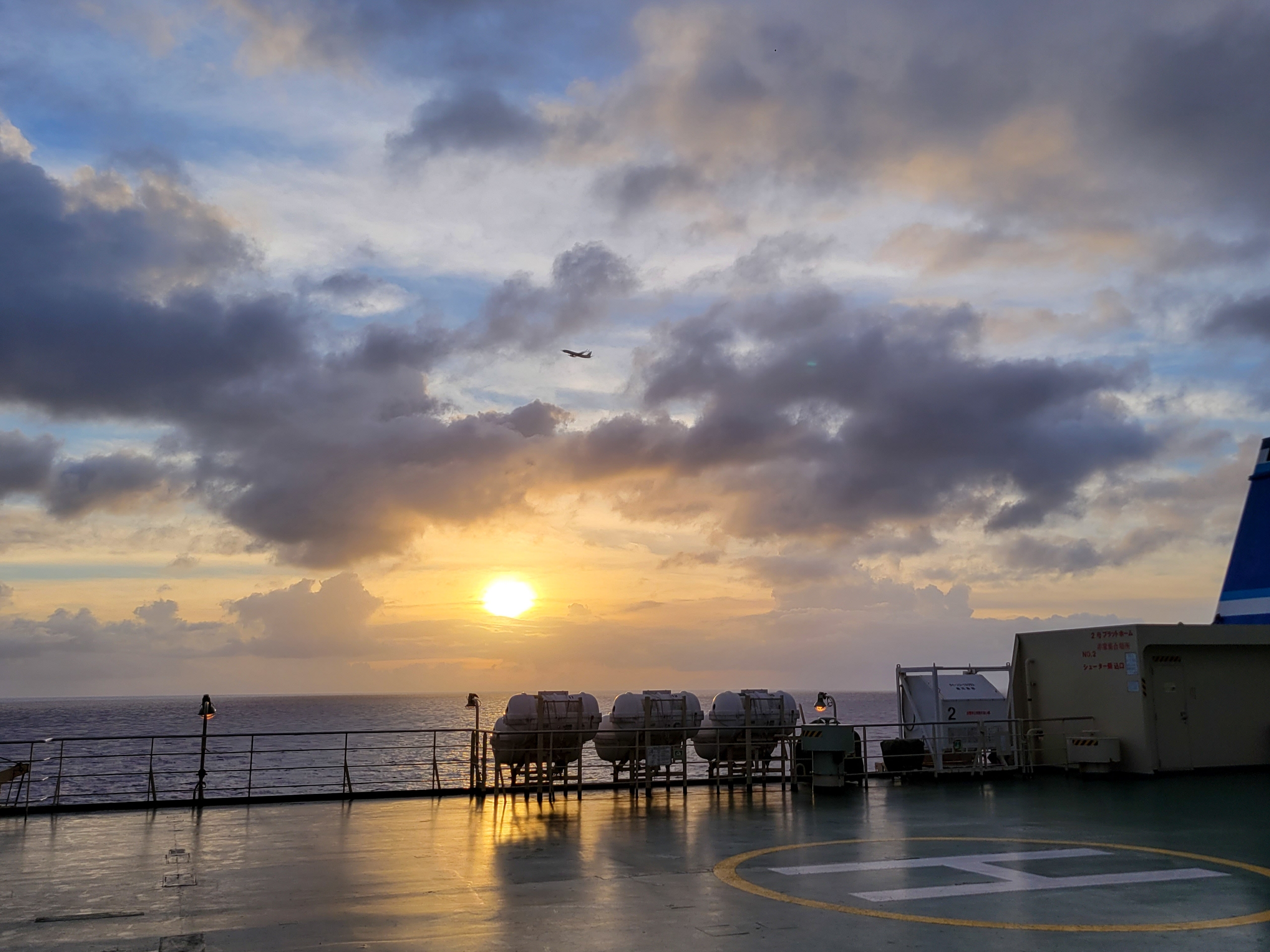 船の上から夕陽が見えるとは贅沢です。