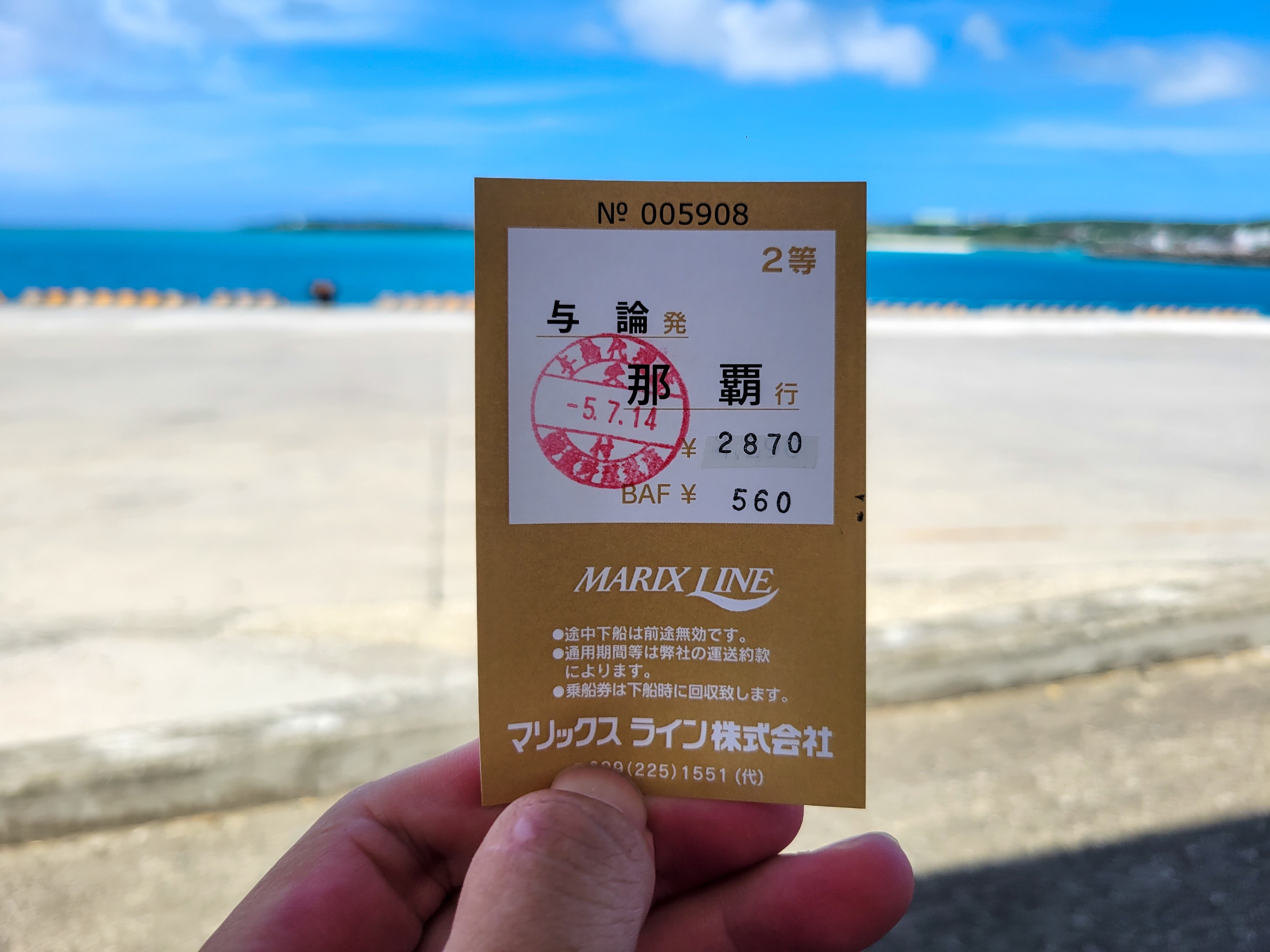 帰りも那覇港まで奄美・沖縄交流割引が適用されて2,870円です。