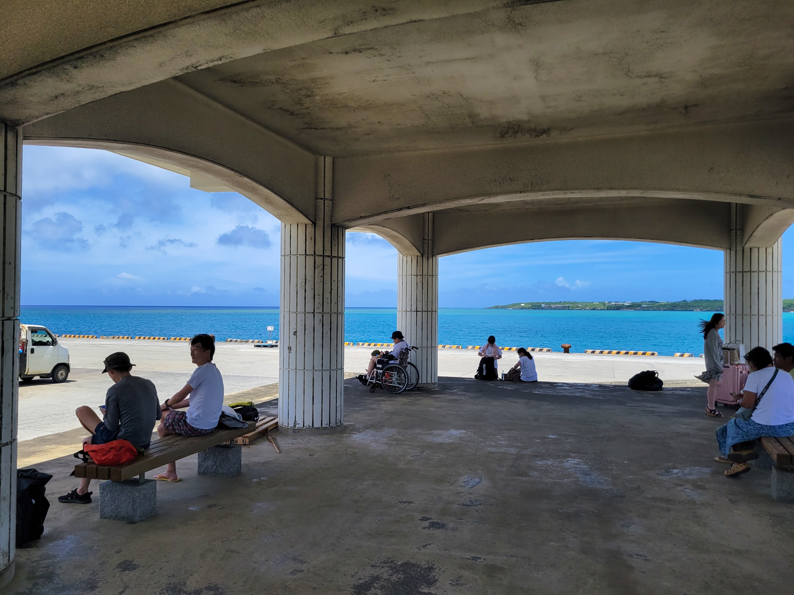 防波堤から少し離れた高台にエアコンの効いたフェリーターミナルがあったので、