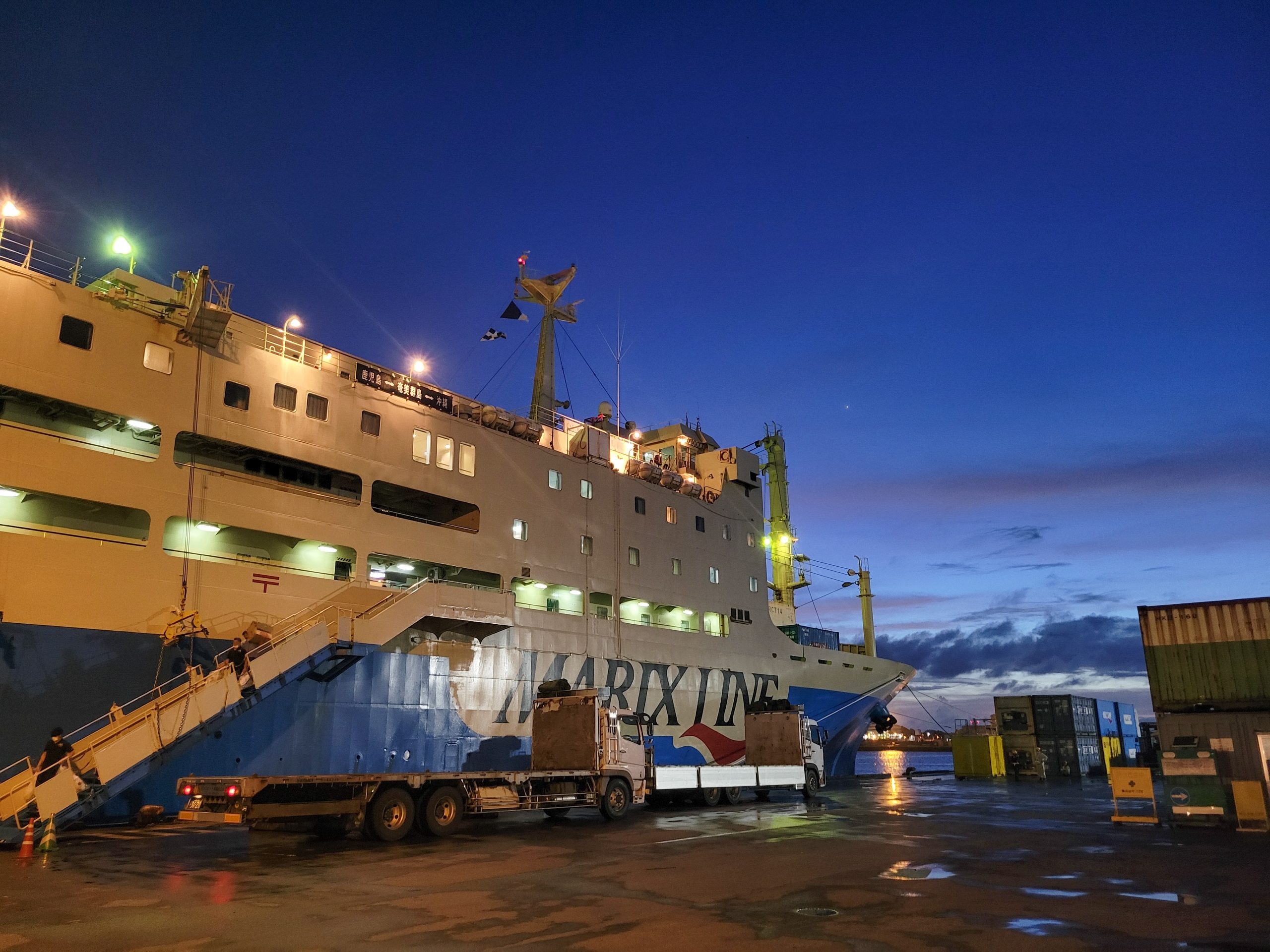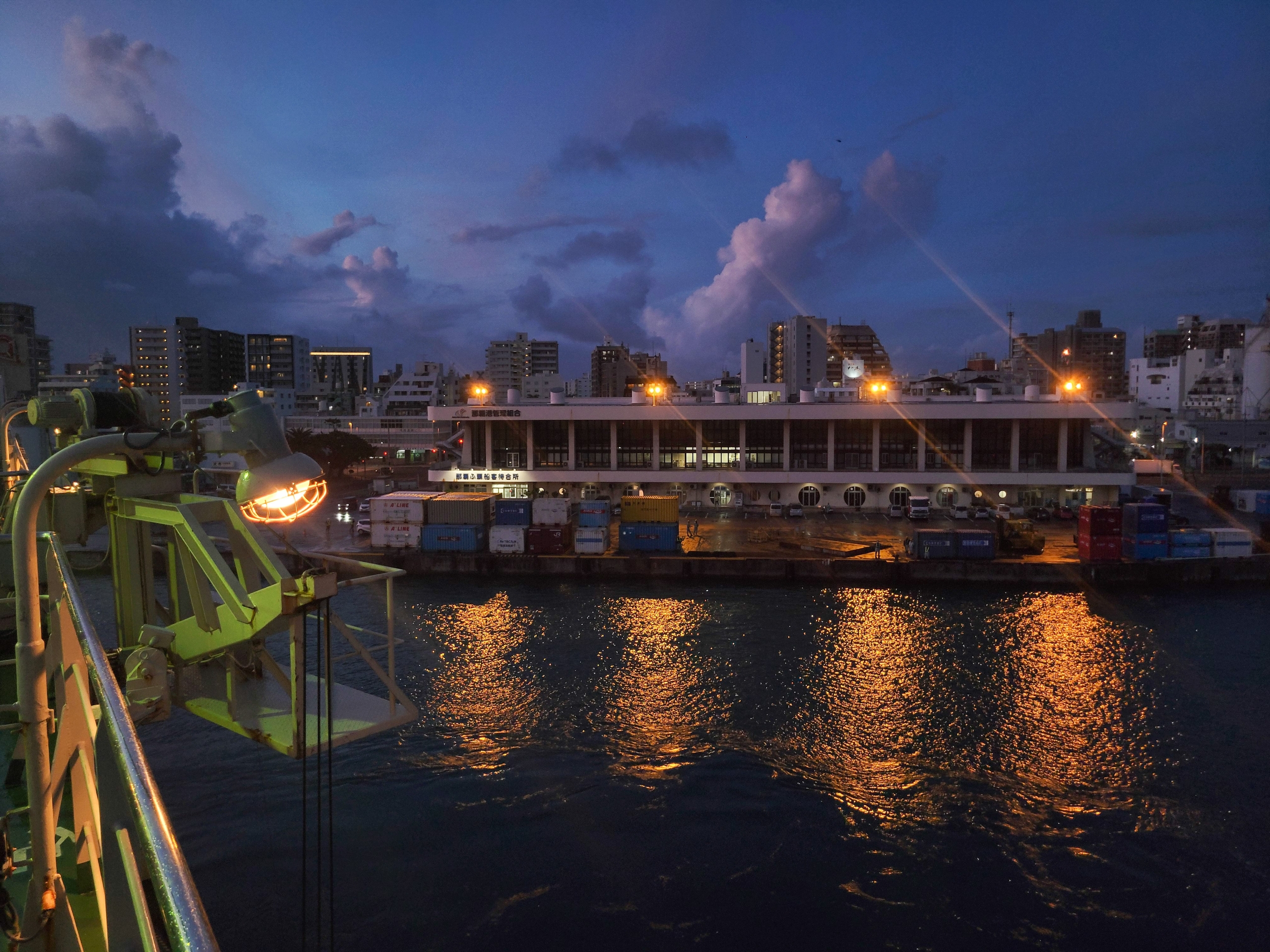 19:40 定刻より40分遅れて那覇港へ着岸しました。