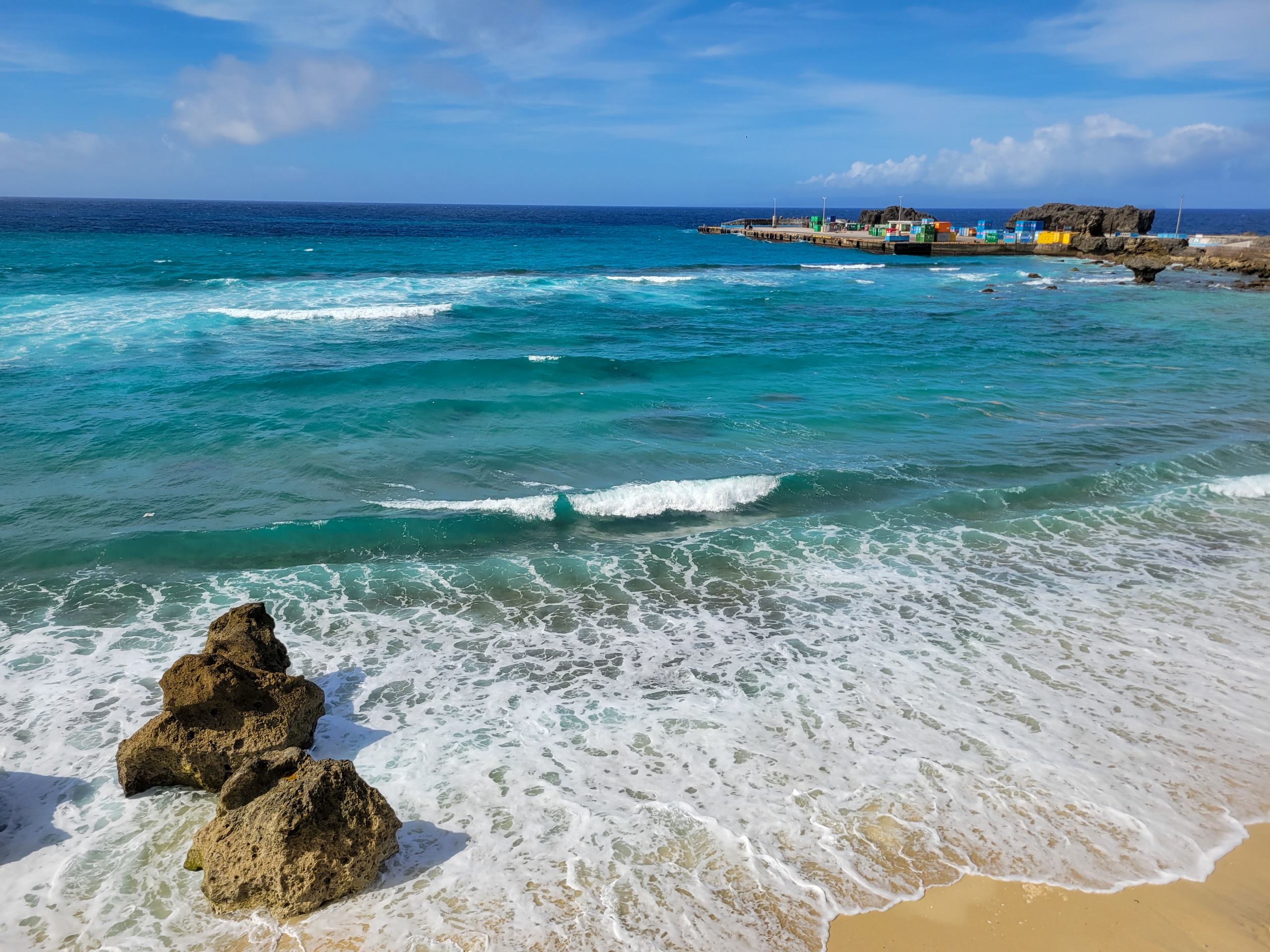 南からの波風を与論島が遮っていたようです。