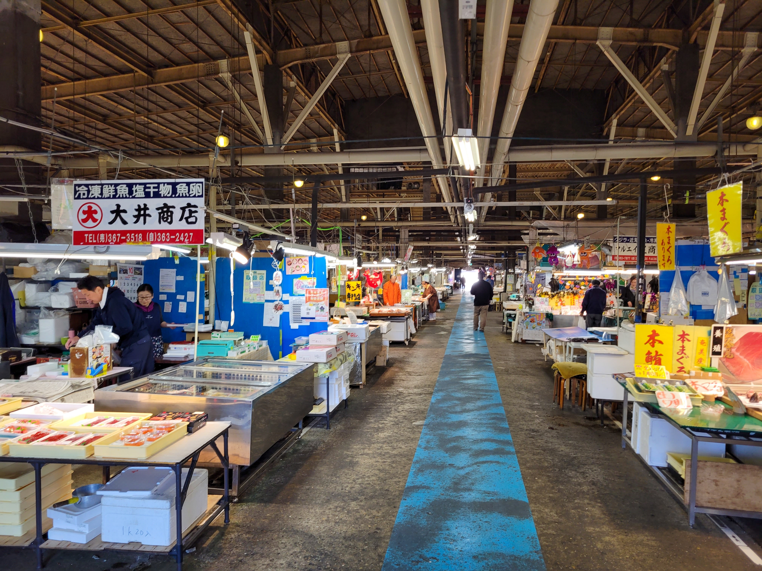 平日が混むのか休日が混むのか分かりませんが、広い市場内は閑散としてました。これだけお客さんが少ないと見ていくのにもためらいますね。