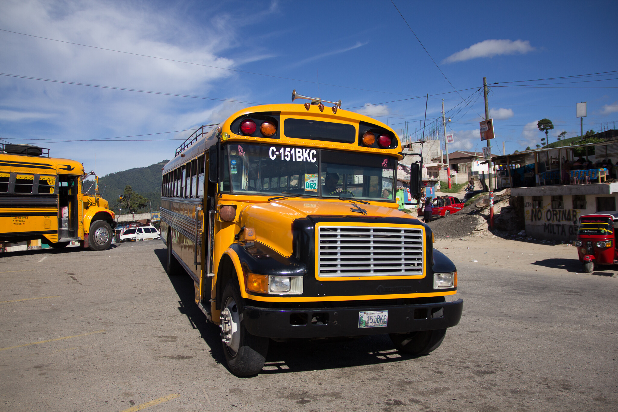 車両はもともとアメリカで使われていたスクールバスの中古。
