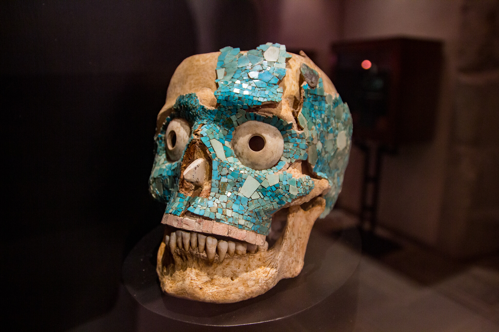 精巧な頭飾りをつけた死者の神ミクトランテクートリ