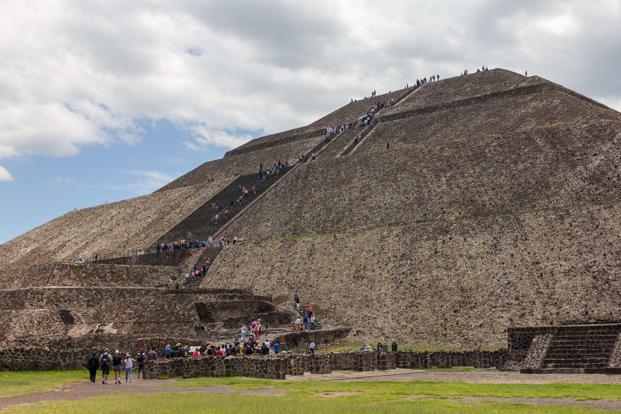 AD200年頃にはすでに完成してたという太陽のピラミッド。一辺225m、高さは65m。