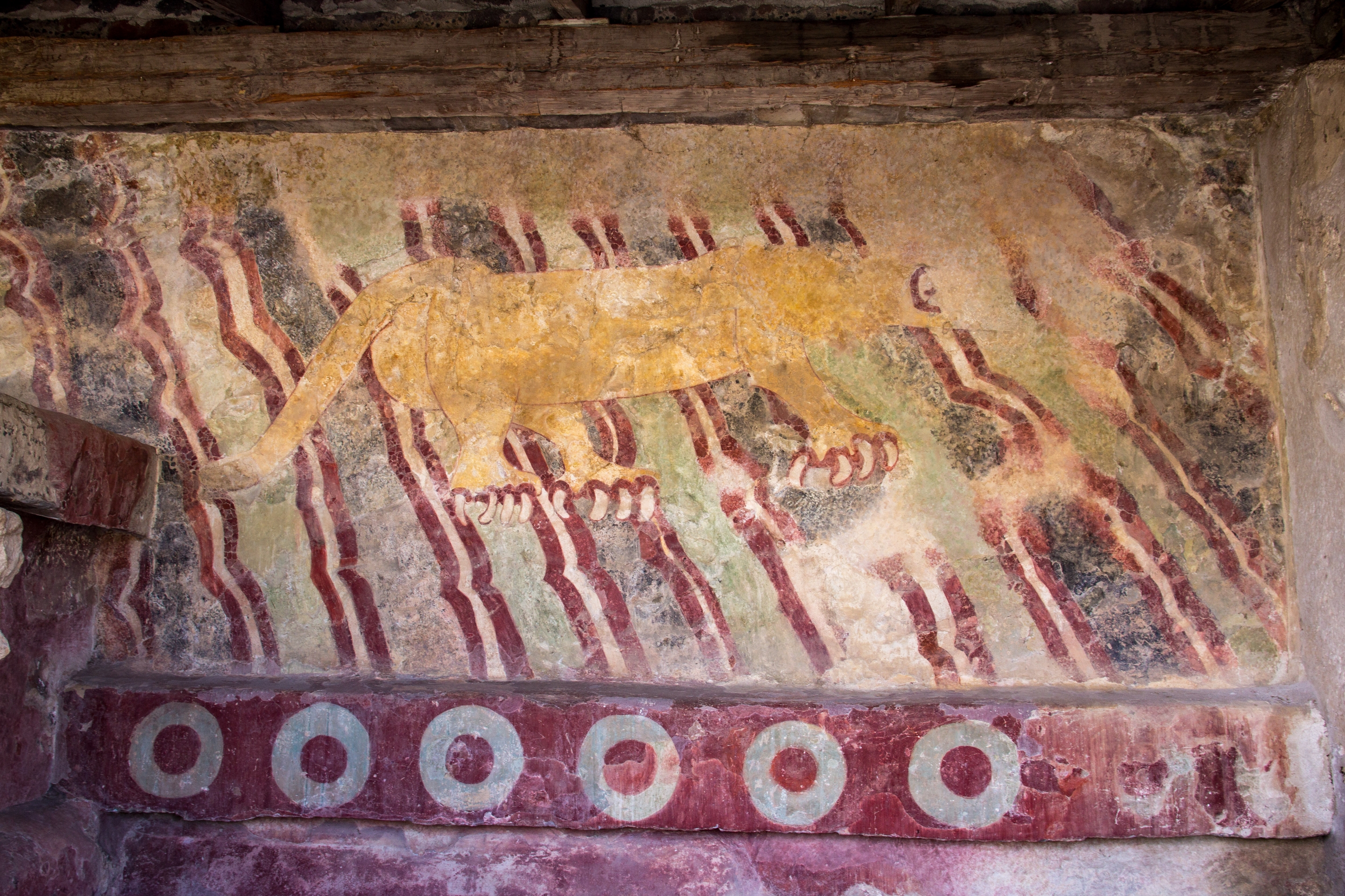 死者の道沿いの基壇にピューマの壁画が描かれていました。