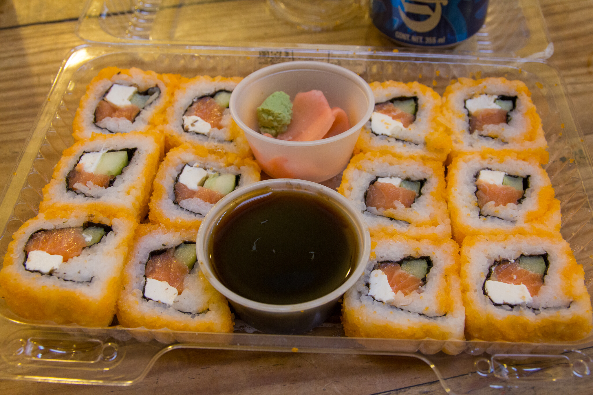 寿司ばかり売っているコーナーがあったので、美味しそうなサーモンロールを買ってきました。しかし、これが美味しくなかった…。しゃりがぎゅうぎゅう詰めなのに乾燥してるし、まわりのまぶしてるのもパサパサ…。ウォルマートで売るぐらいだから、メキシコの人は美味しいと感じてるんでしょうか?じゃなかったら、日本料理屋の営業妨害だよ!と思ったぐらいです。さすがに、全部食べ切れずに美味しくないと前置きした上でみんなに食べてもらいました。