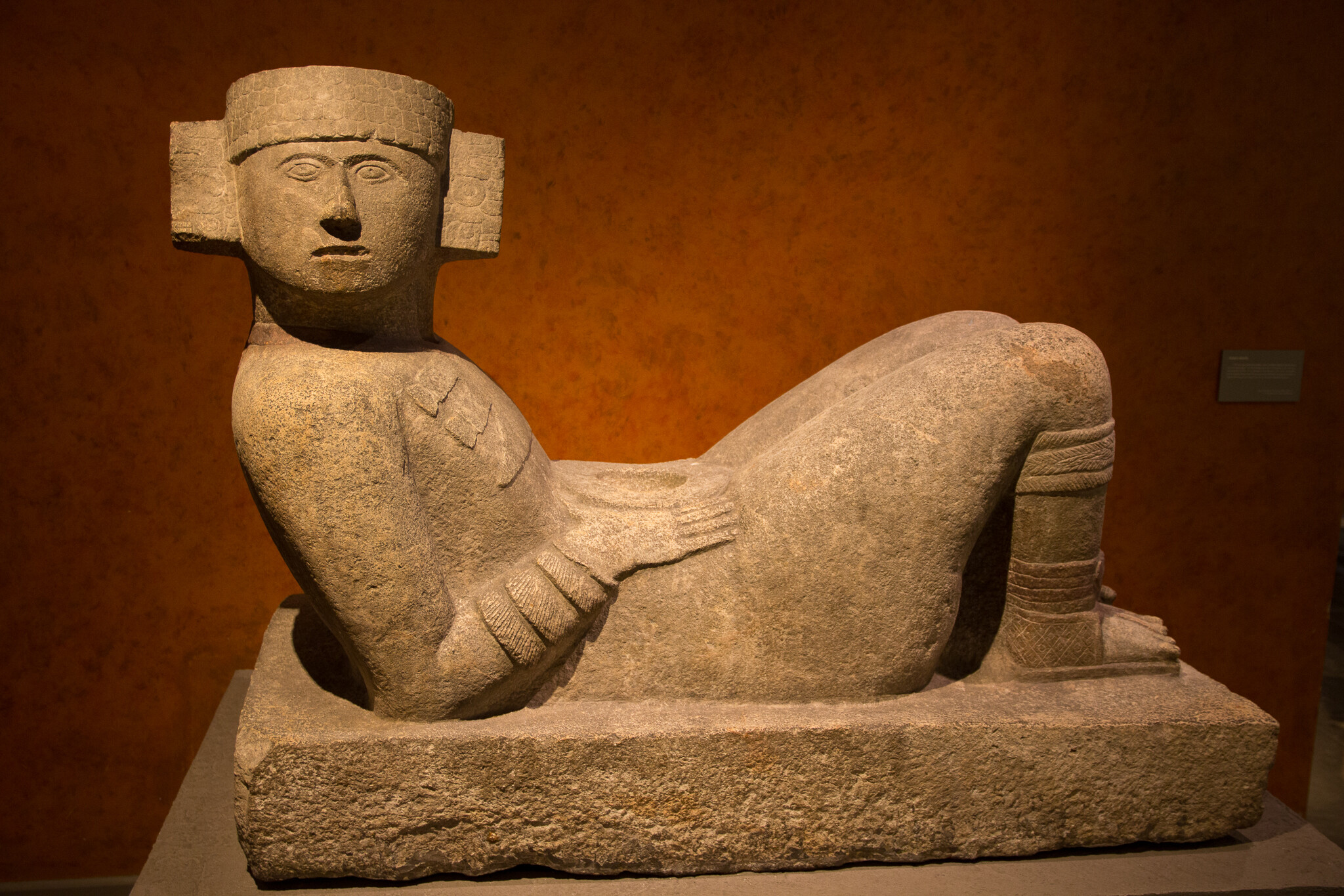 横たわる姿勢をとった人間は、戦死した戦死を表しています。人身御供の儀式がおこなわれたり、チャクモールの中央の窪んだ皿には人間の心臓が生贄として置かれたといわれています。