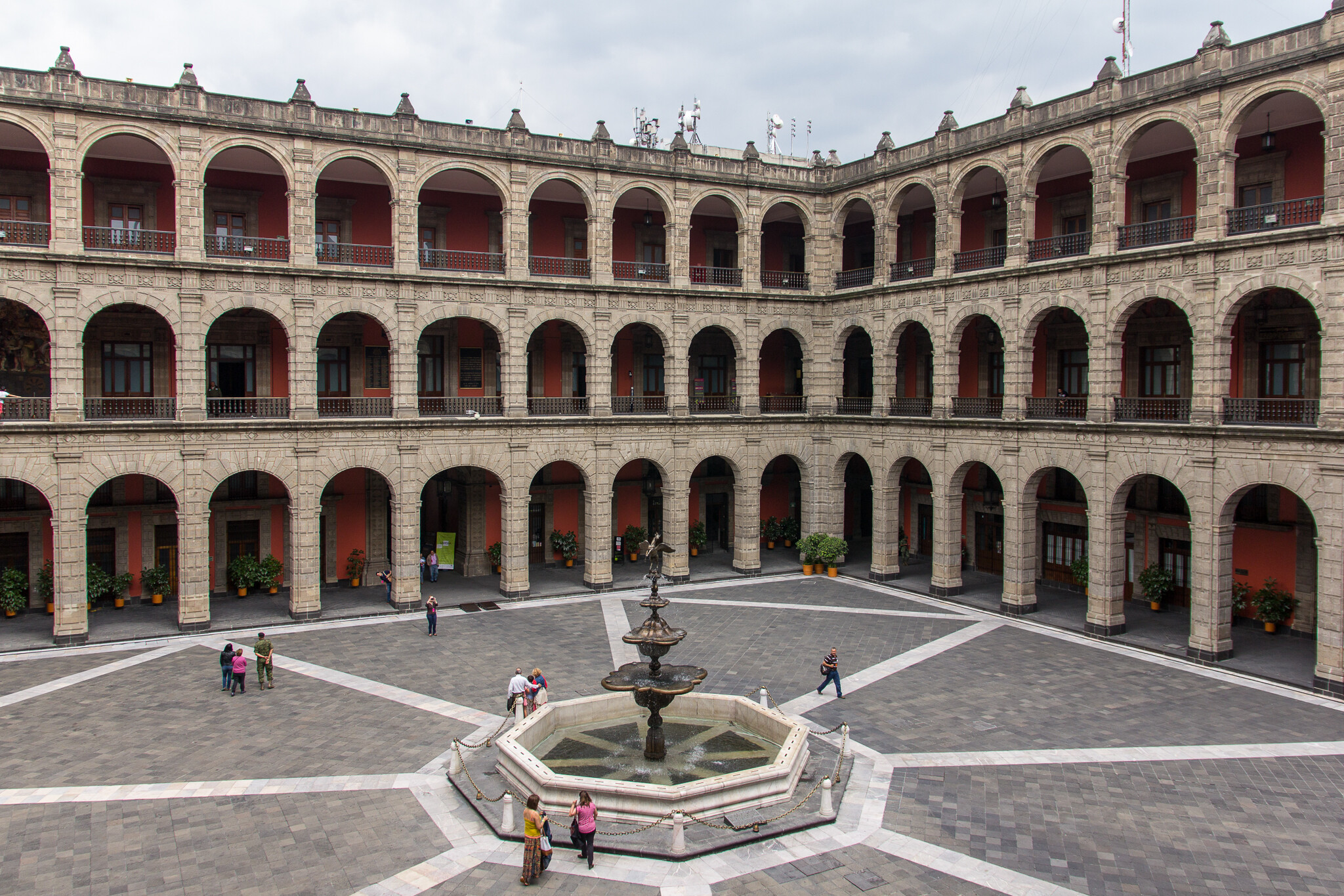 国立宮殿はさまざまな建築様式が混在した建物です。ソカロに面した正面はルネッサンス様式、内部はバロック様式、中庭はネオクラシック様式とのこと。
