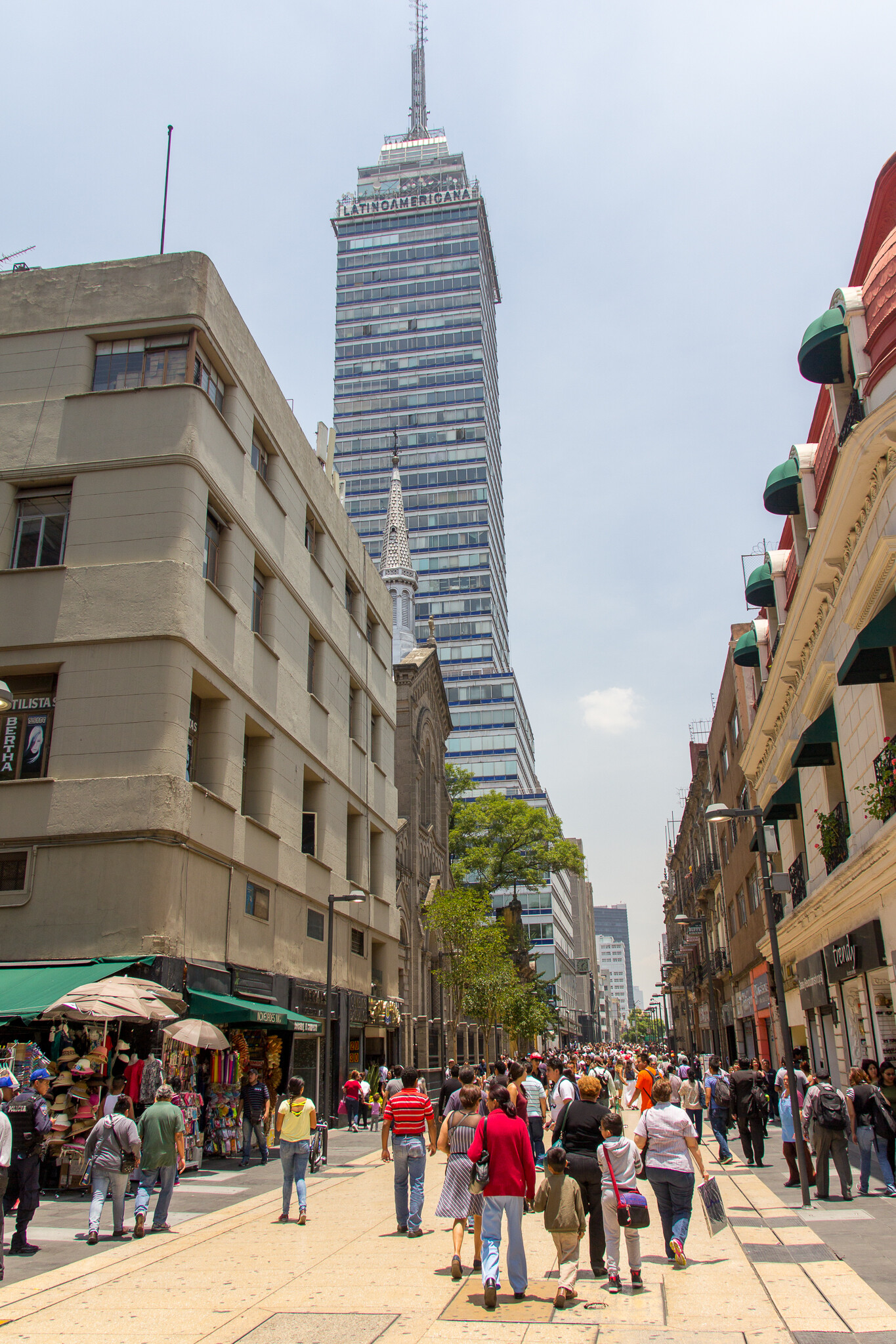 5月5日通りは相変わらず賑わっています。ラテンアメリカタワーはまあ登らなくても良いかな、