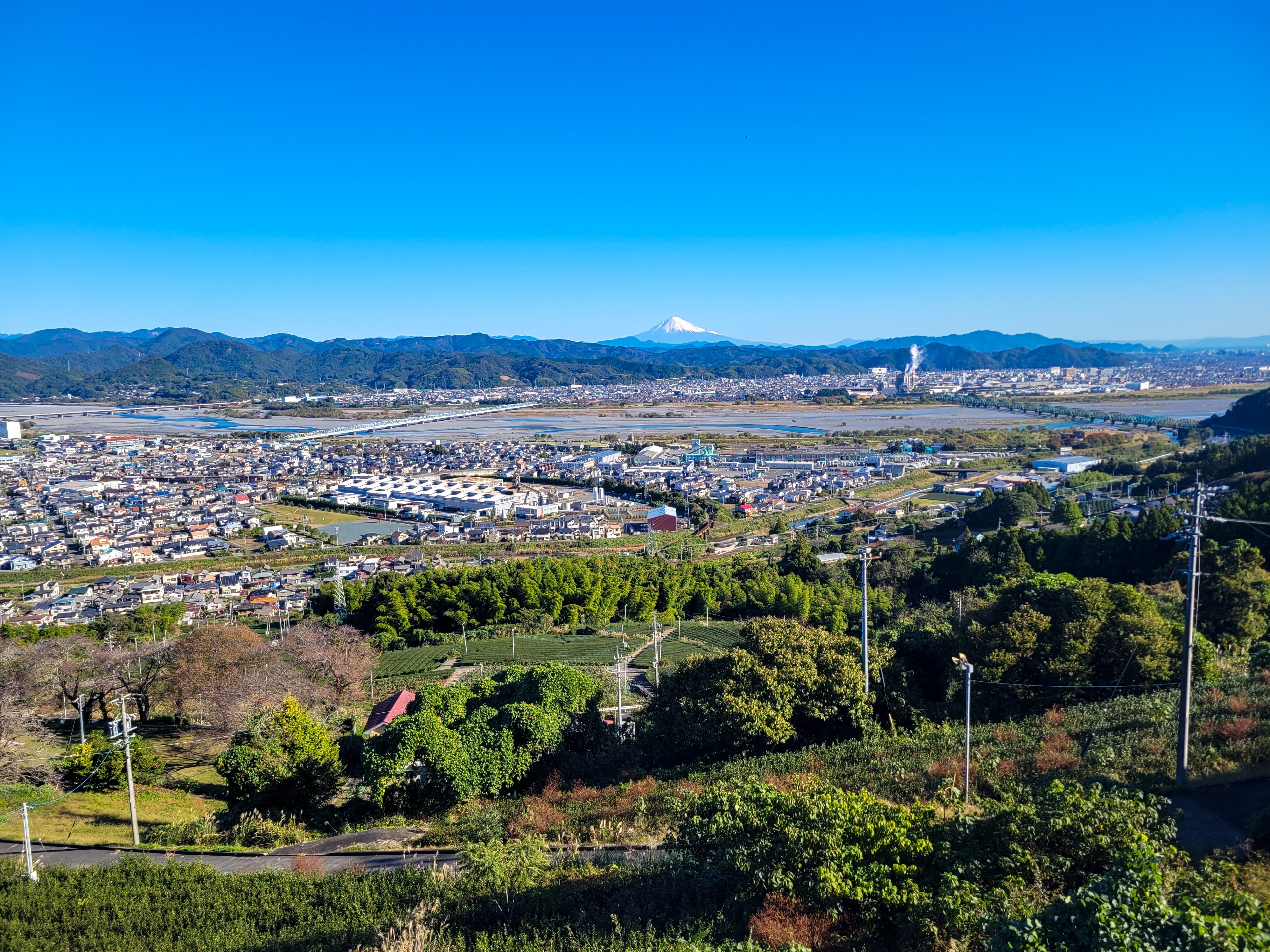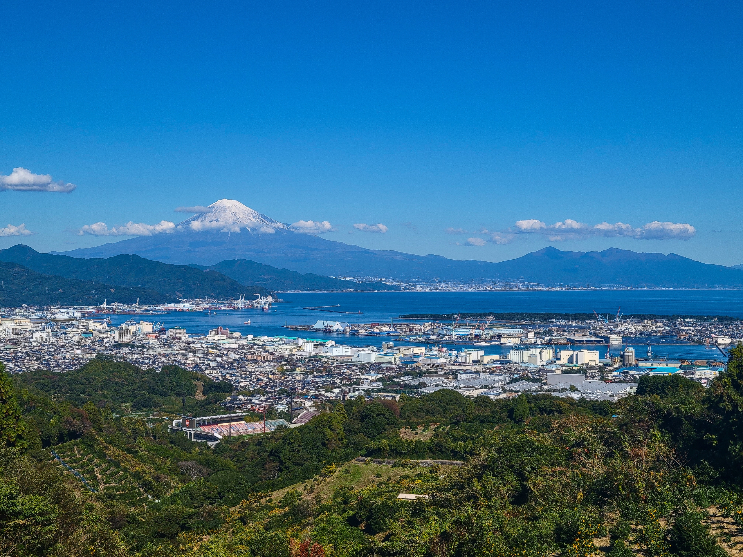 雲がとれている!そして、夢テラスよりも、眺めがとても良い。手前にみかん畑、清水港、駿河湾、そして富士山。