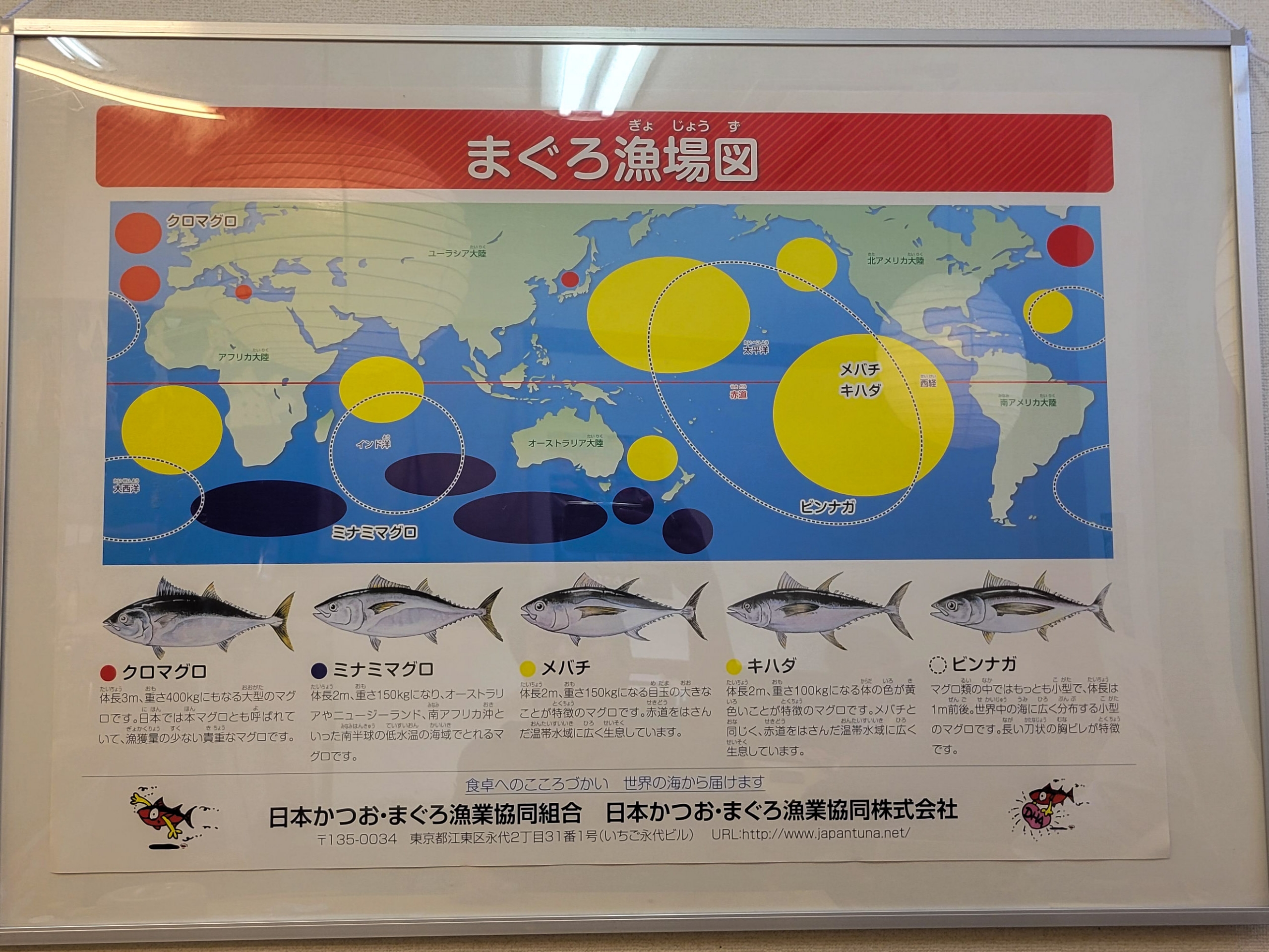 左から高級魚、右にいくにつれ大衆魚。といっても、まぐろなのでビンチョウでもそこそこ値段はしますが。