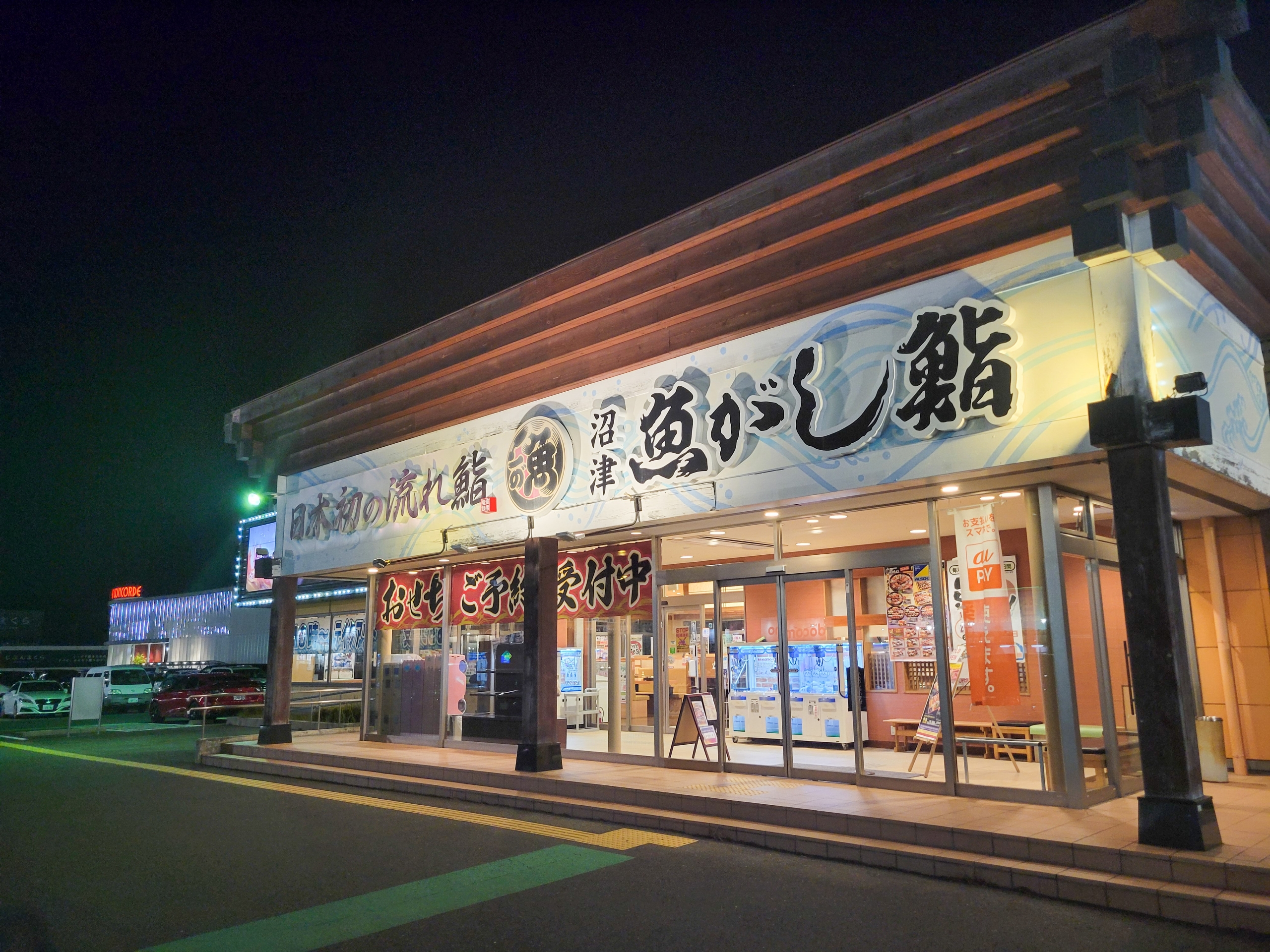 静岡県内を中心に展開している沼津魚がし鮨。イオンモールの駐車場内にある浜松野店は、ホテルから車で10分ほどです。流れ鮨タイプの店舗なので、回転寿司です。しず旅先スタンプラリーのポイントが使えます。