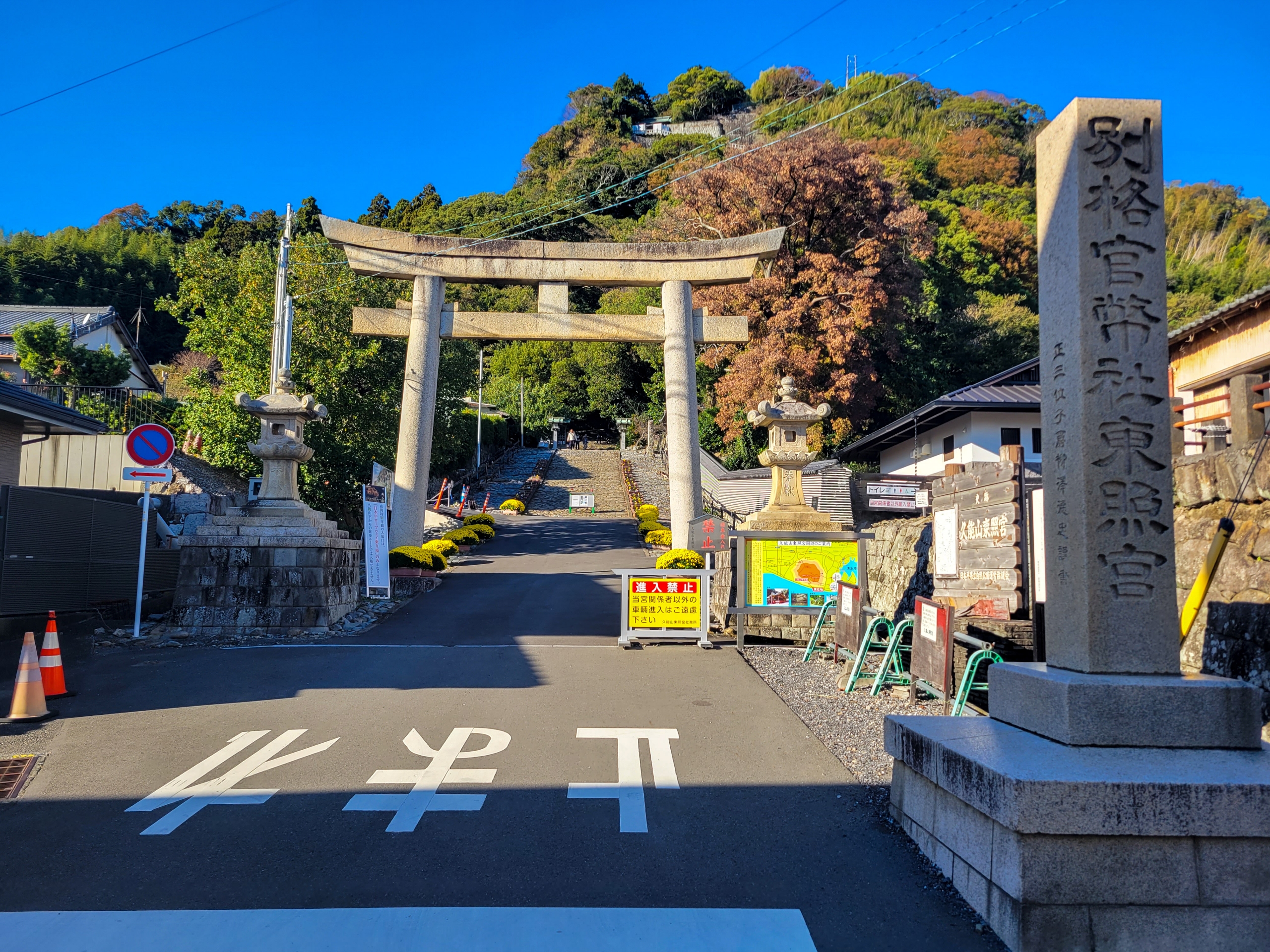 お腹は一杯になったところで、久能山東照宮へ参拝します。参道入口にはお土産店など数店舗ありますが、少し閑散としてました。普段はロープウェイを利用する人の方が多いようです。