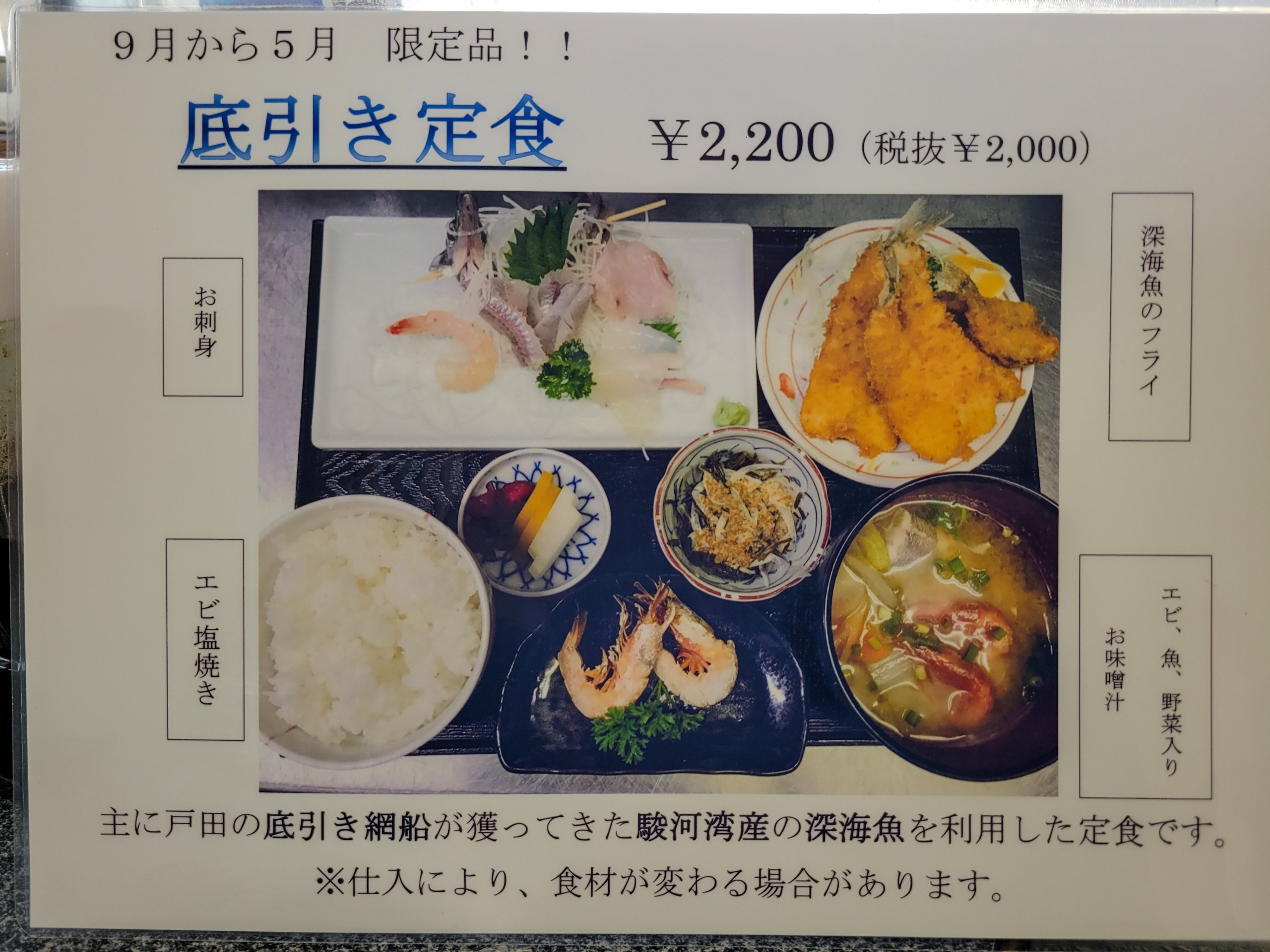 戸田は深海魚の聖地と呼ばれています。2kmほど沖合いに行くだけで、水深が500mに達し、トロール船を使った底引き網漁が行われています。