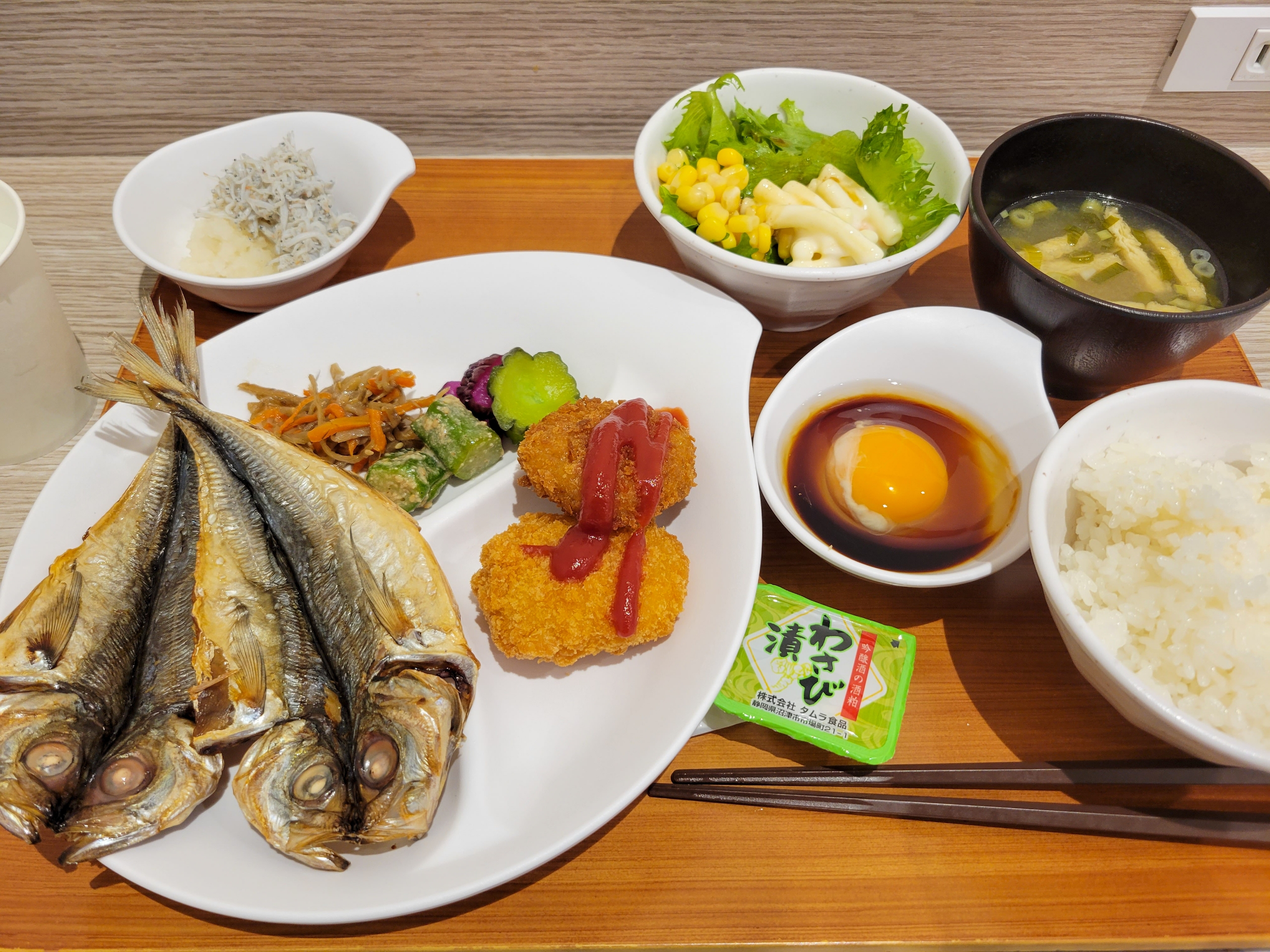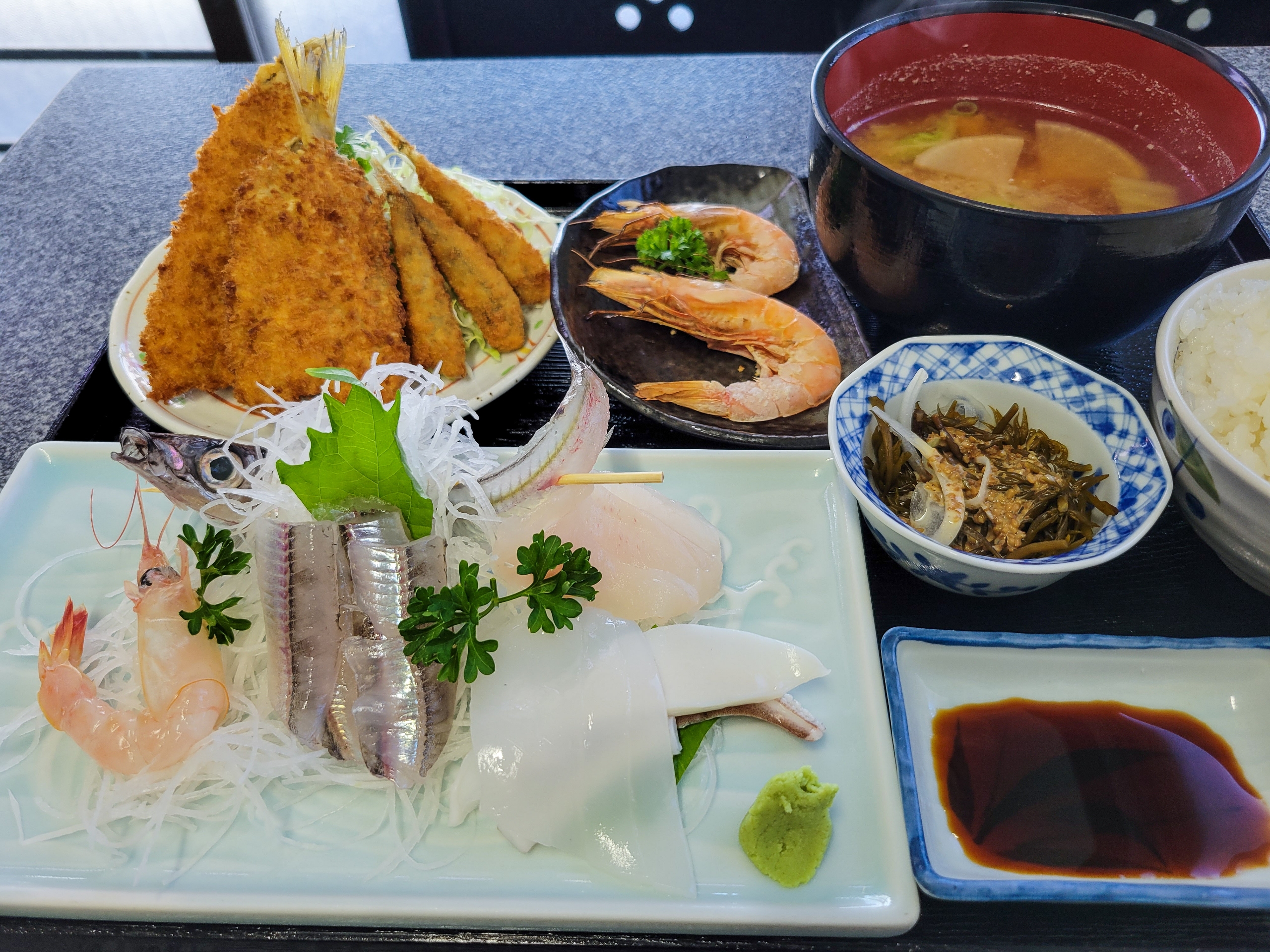 アジの開き、三島コロッケ、しらす、わさび漬けが静岡名物。旅先で野菜がしっかり食べれるのは嬉しい