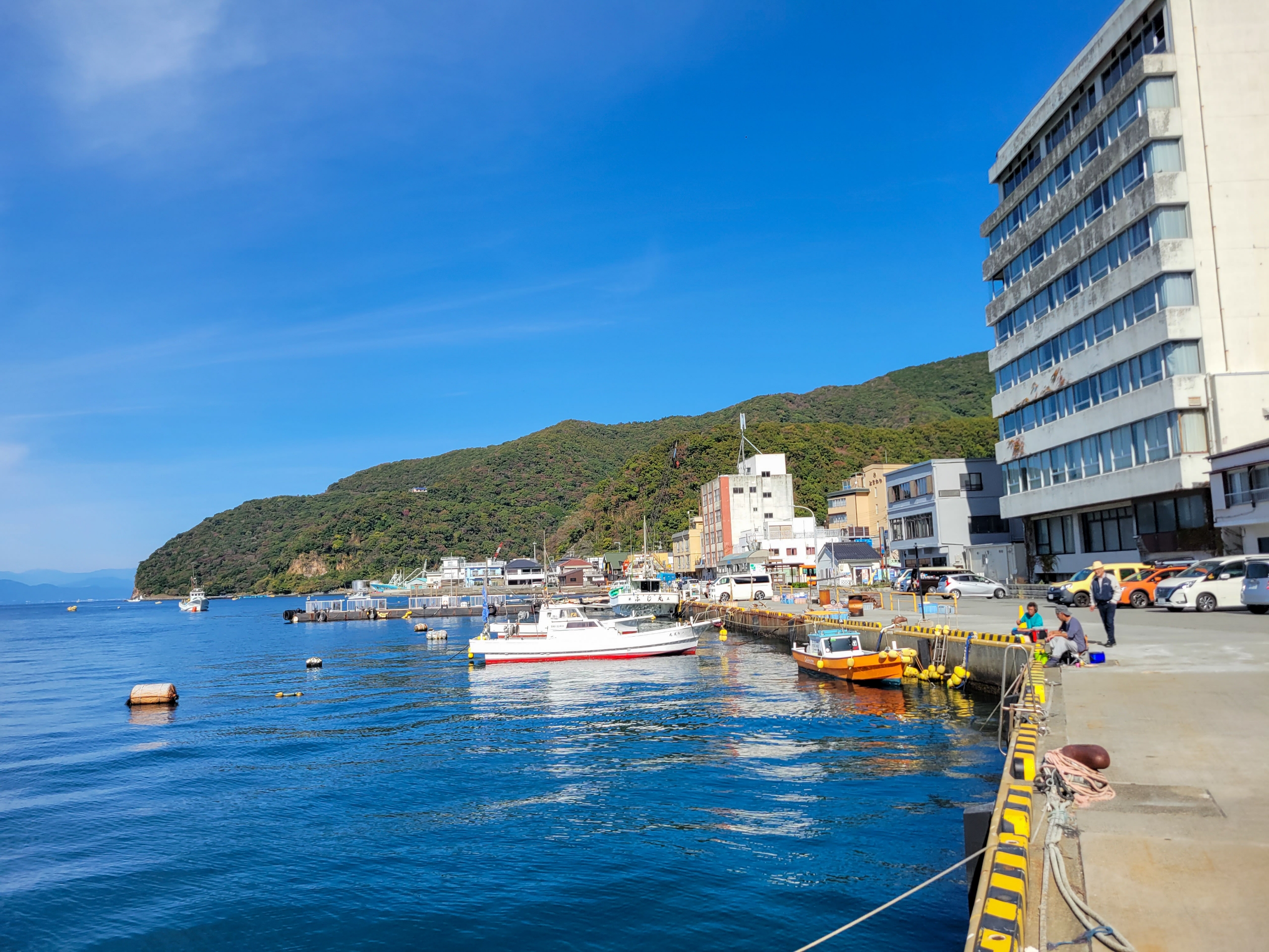 戸田にもさきほどの大瀬崎のような半島があり、沖合いからの波風を防いでくれているので、とてもおだやかです。のんびりと釣りをしている人も多い。