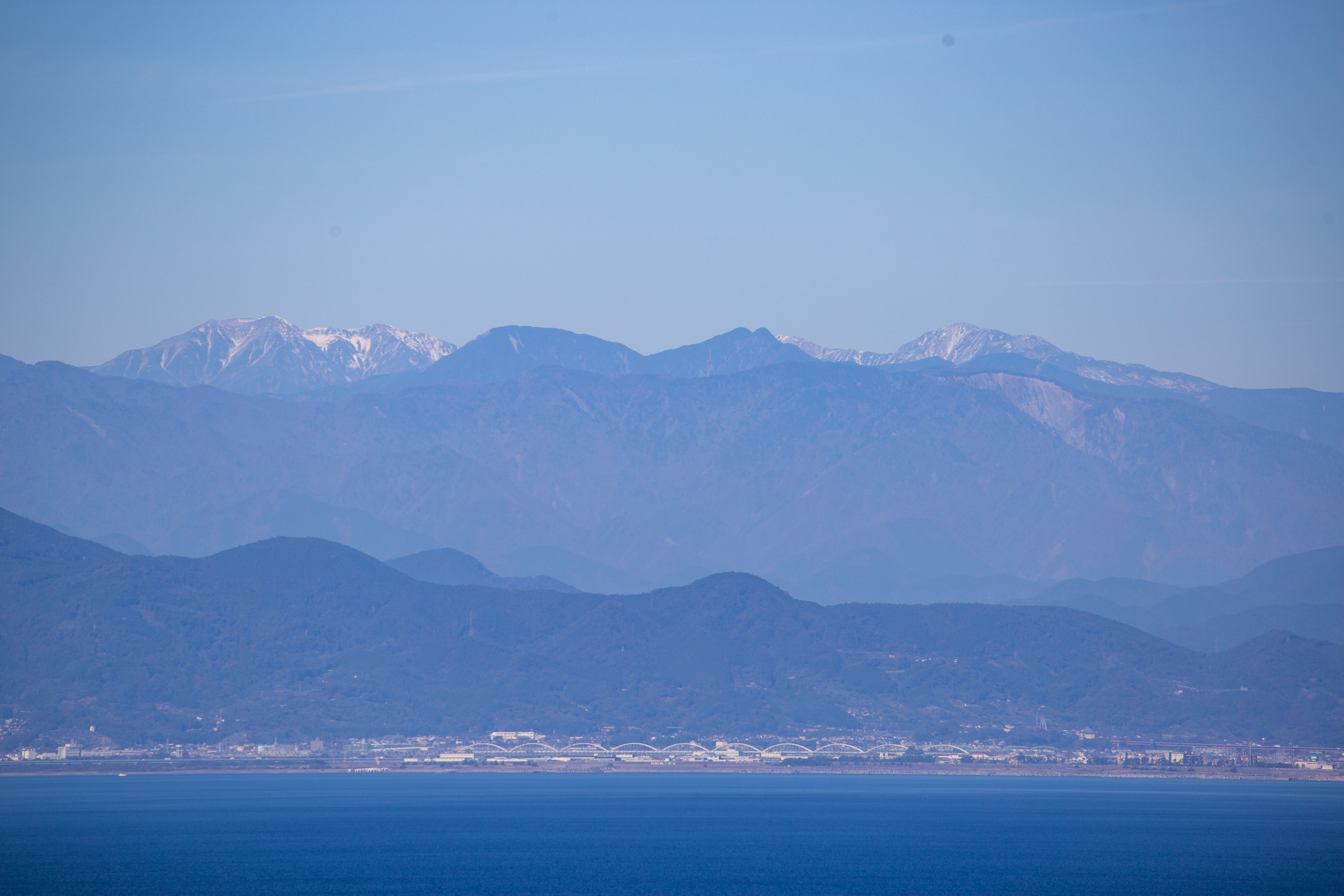 富士山の左(西)には、南アルプスの山々も見えます。今年はまだ雪が少ないようです。富士山もまだまだ雪が少ないしね。