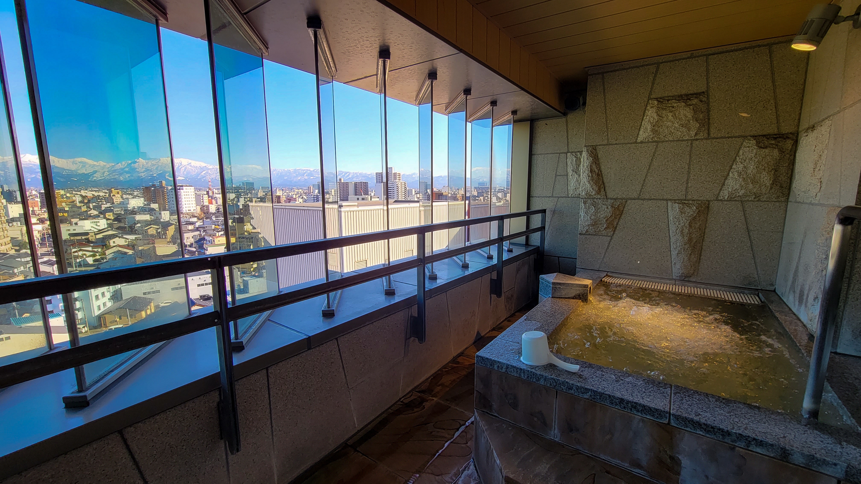 ホテルの展望大浴場から、お湯につかりながら立山連峰を見たい。