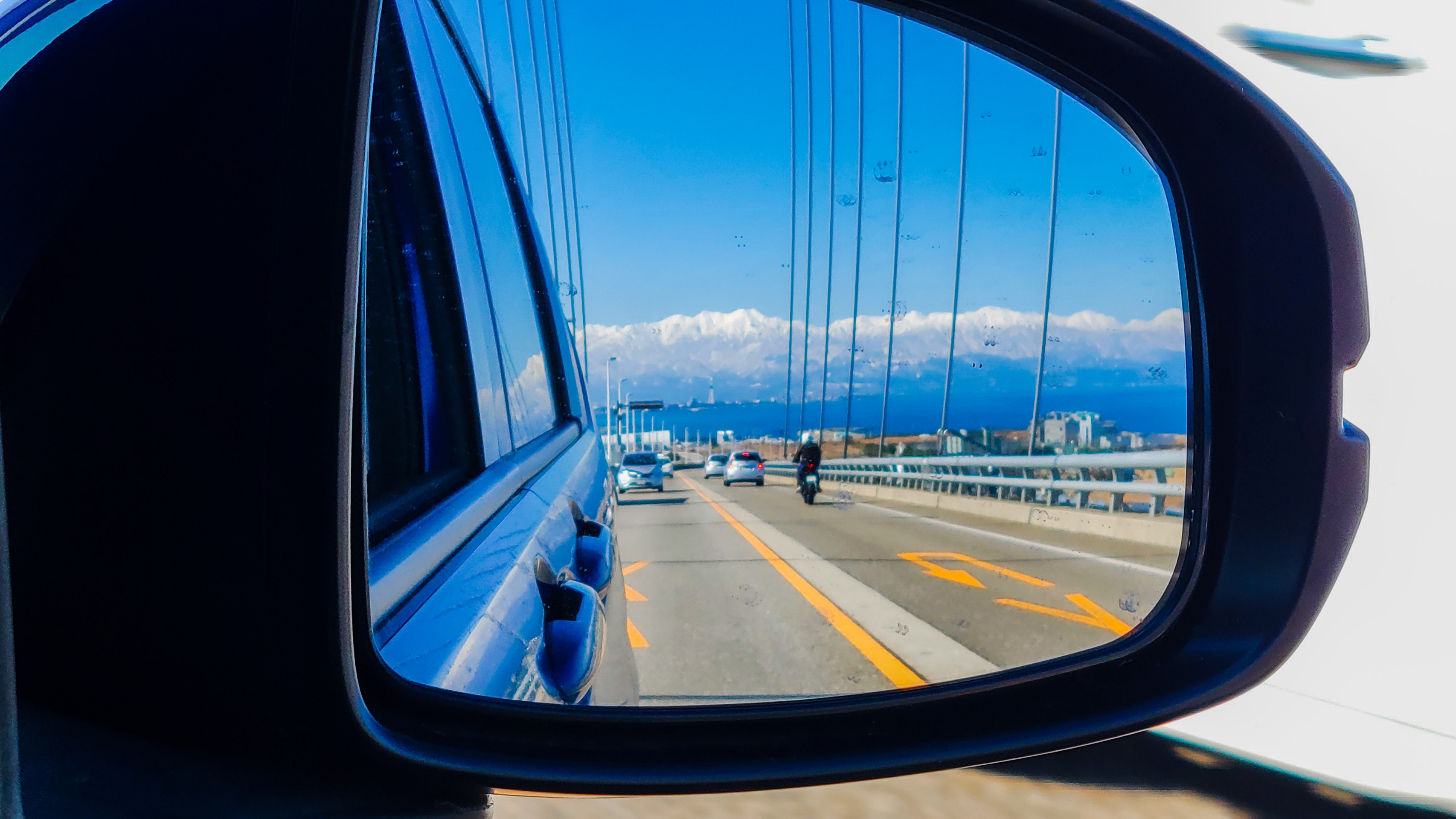 こんな素晴らしい景色が見える新湊大橋が無料なのはほんとありがたい。一度きりではもったいないので、Uターンしてみました。
