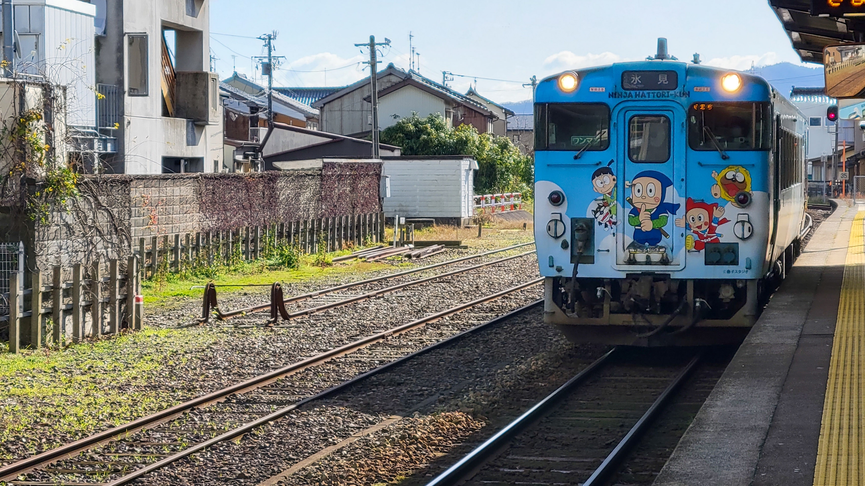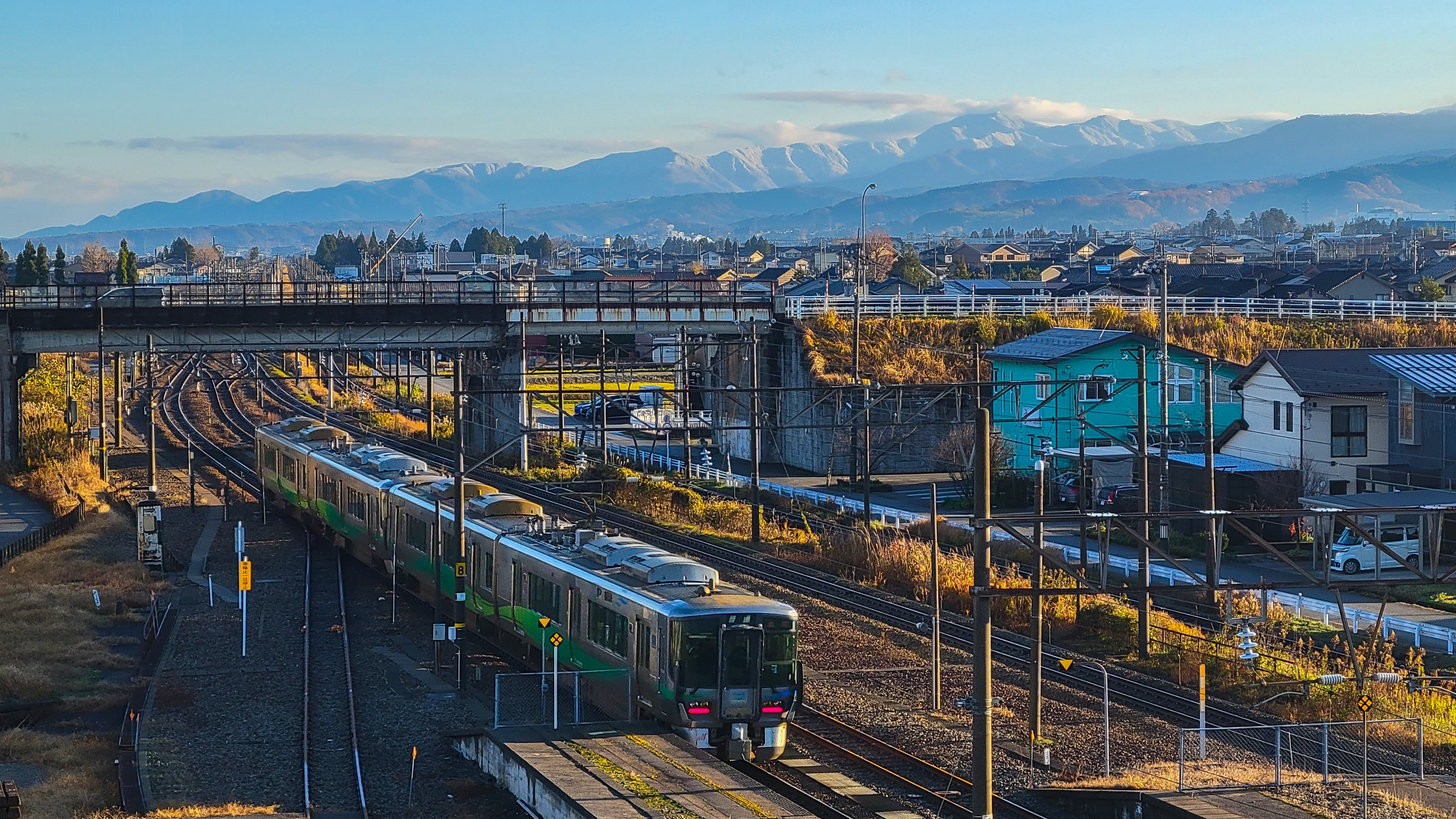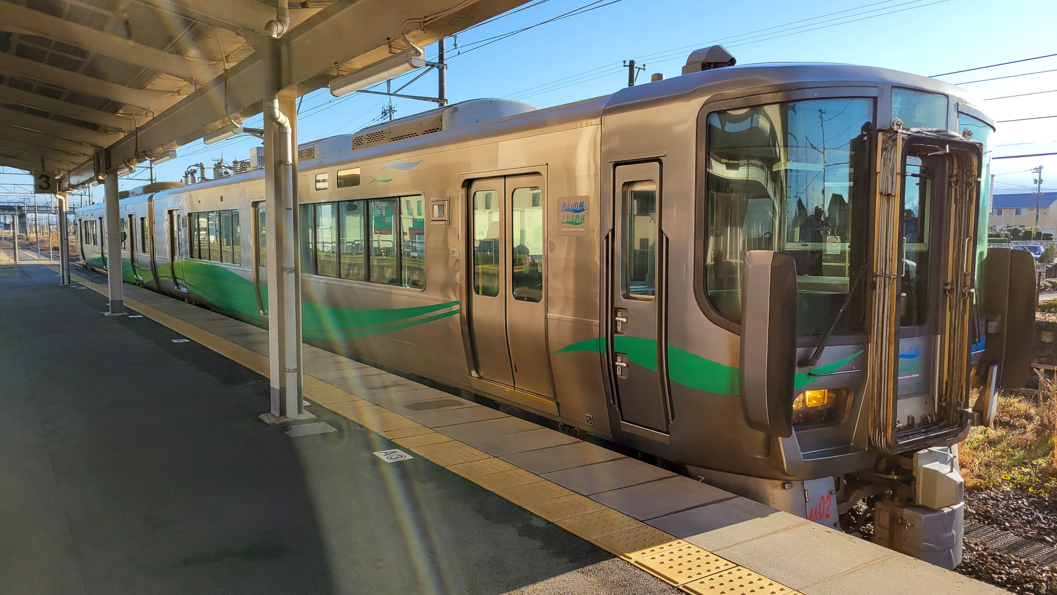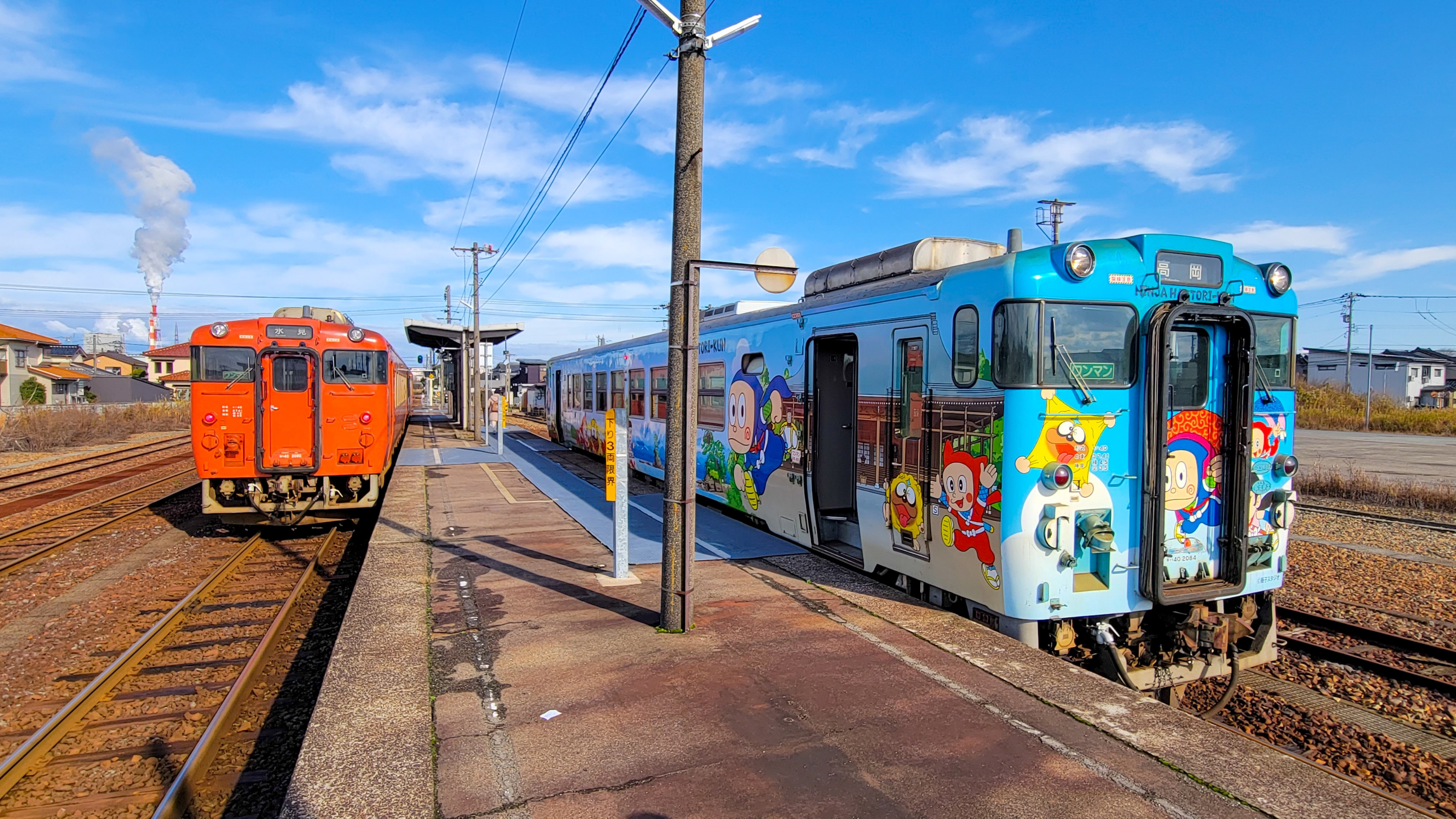 氷見線は単線のため、反対側の列車との待ち合わせ。