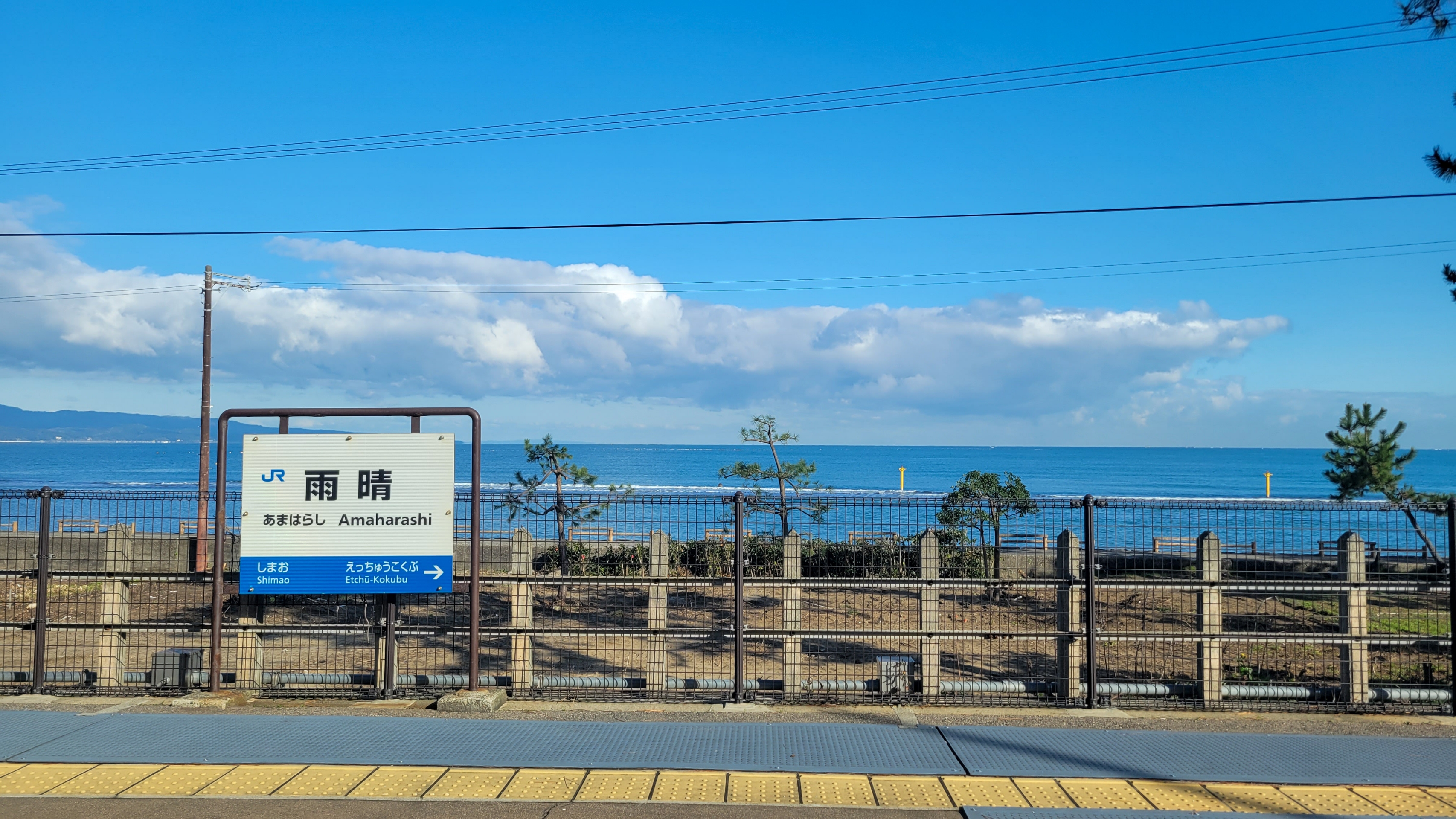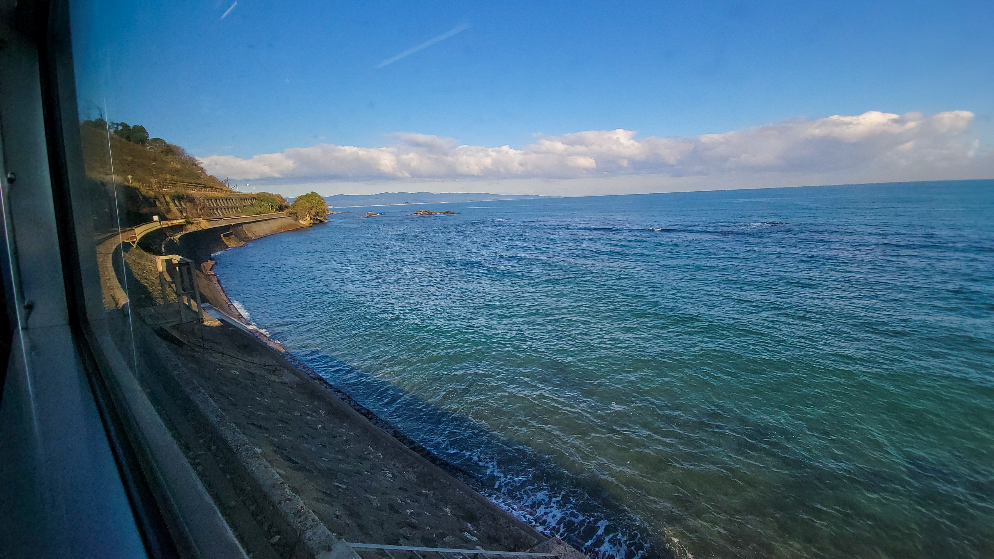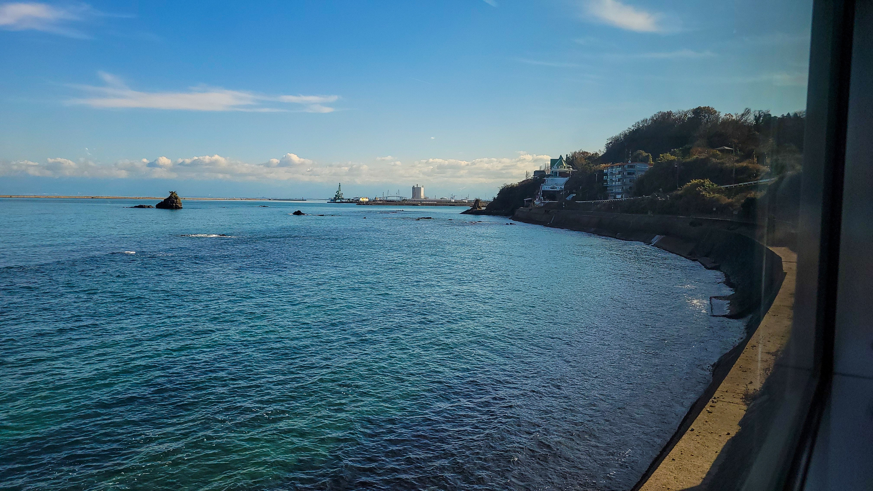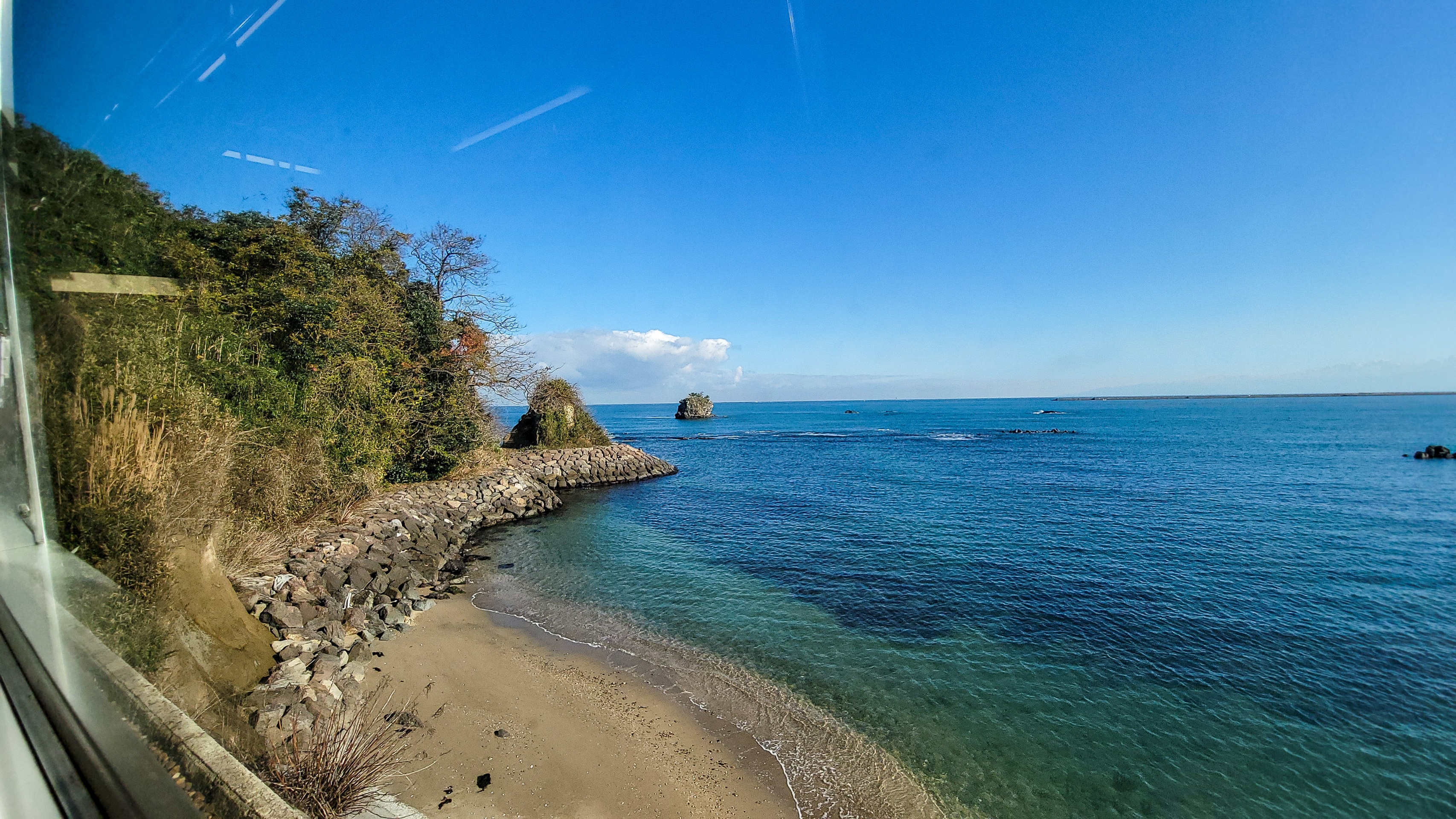 氷見線から眺める海の景色は素晴らしいです。週末には観光列車も運行されるほど。
