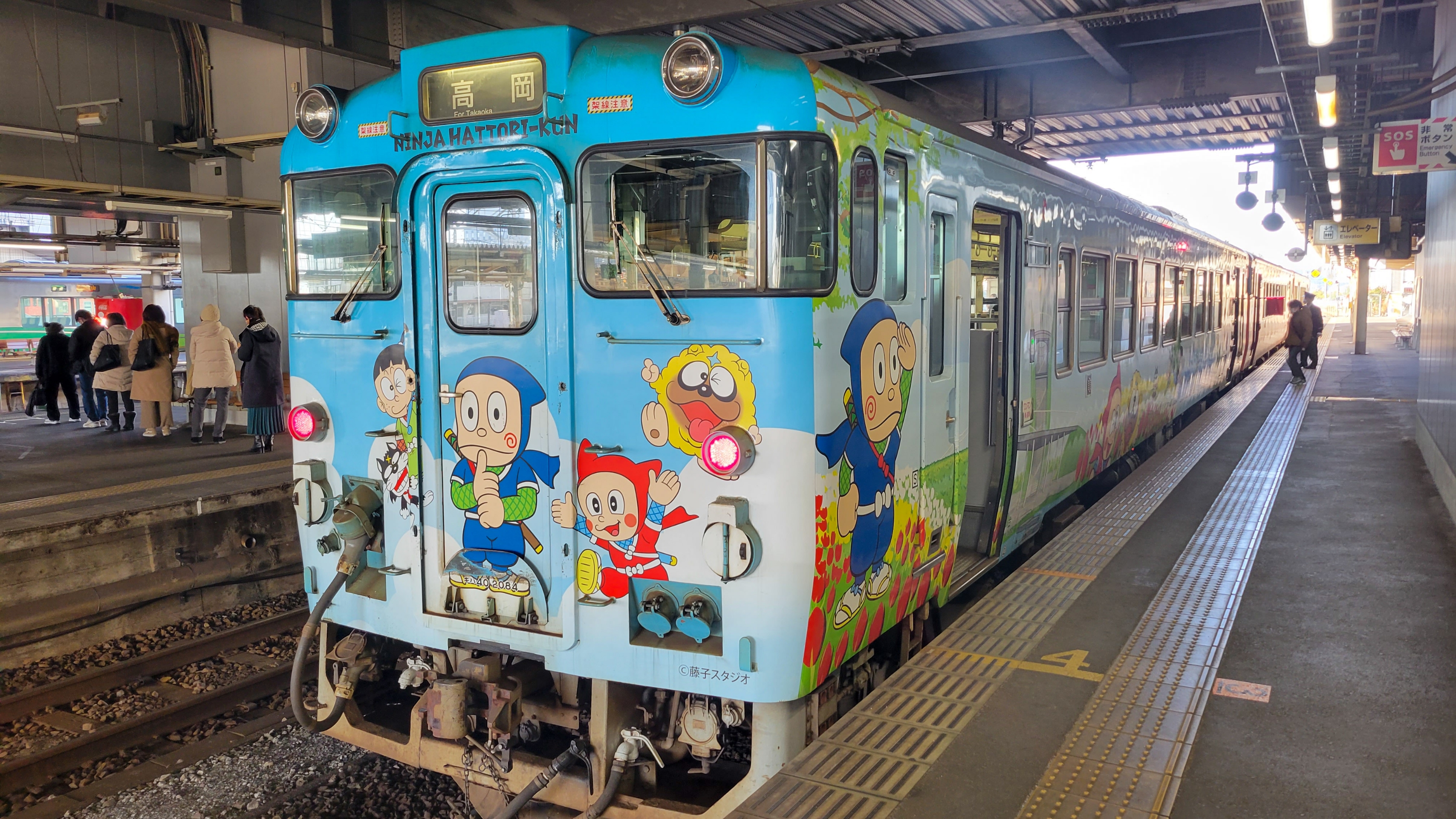 高岡駅までいくと時間かかるので、少し歩いて万葉線に乗り換えます。