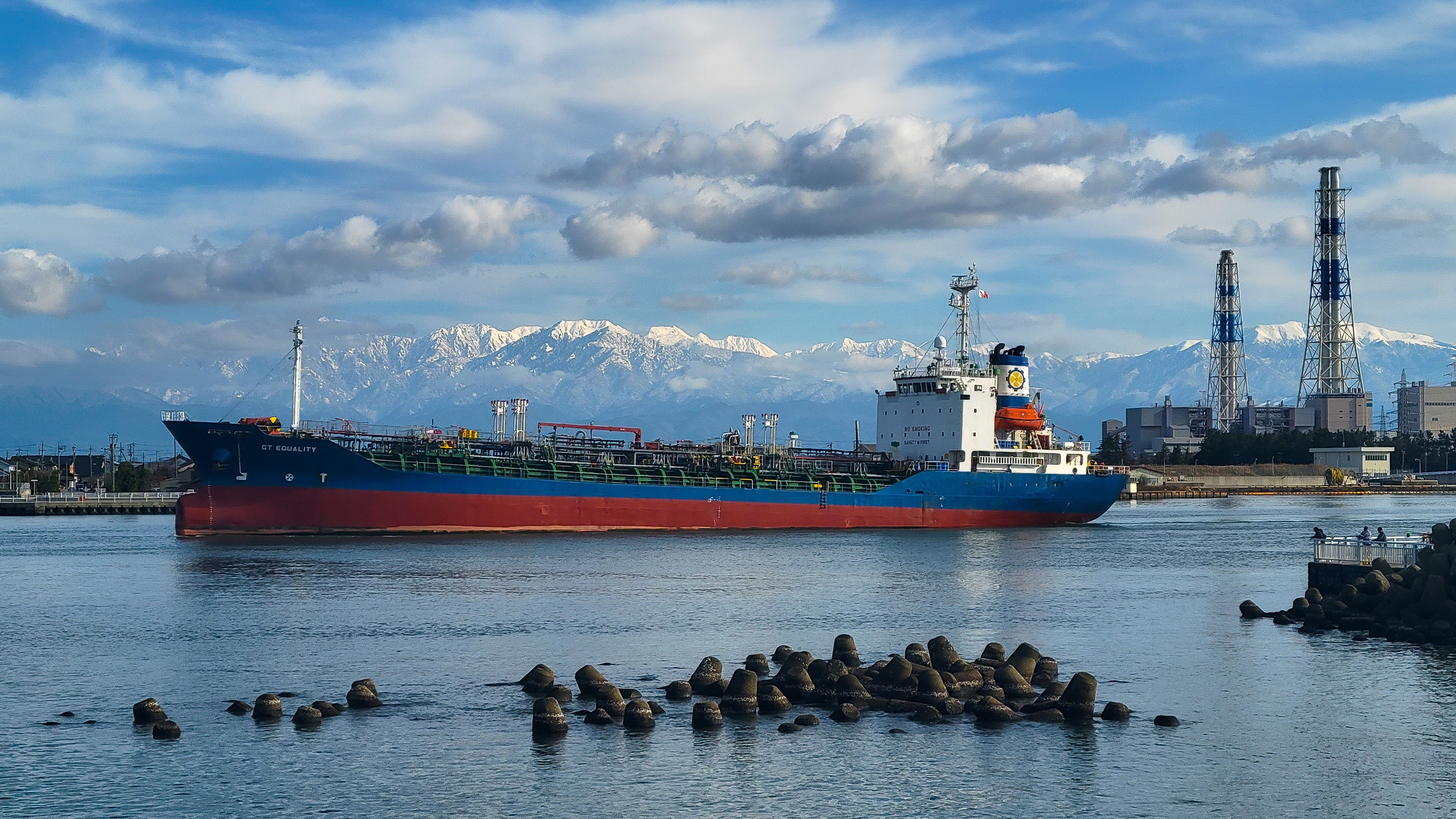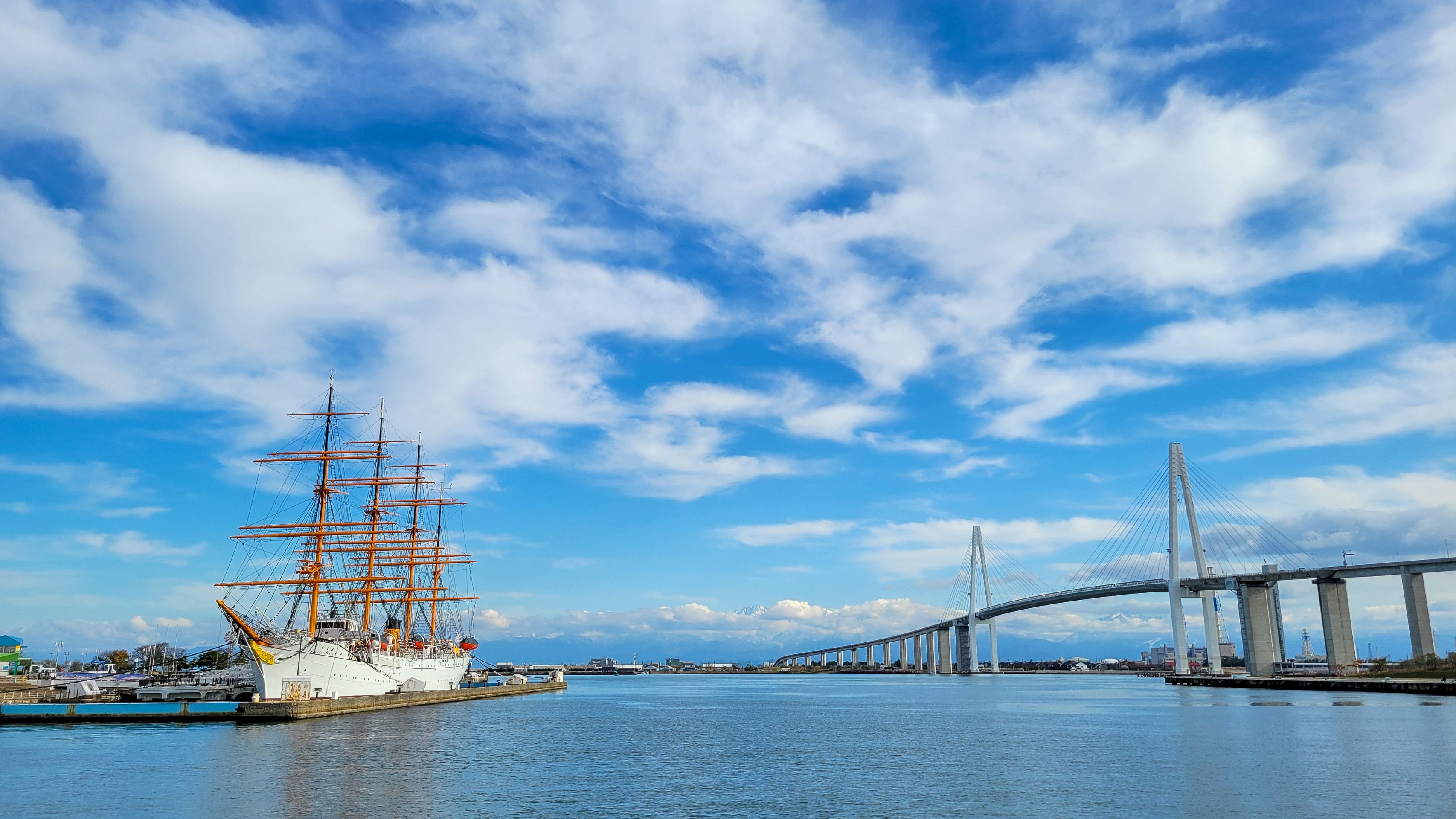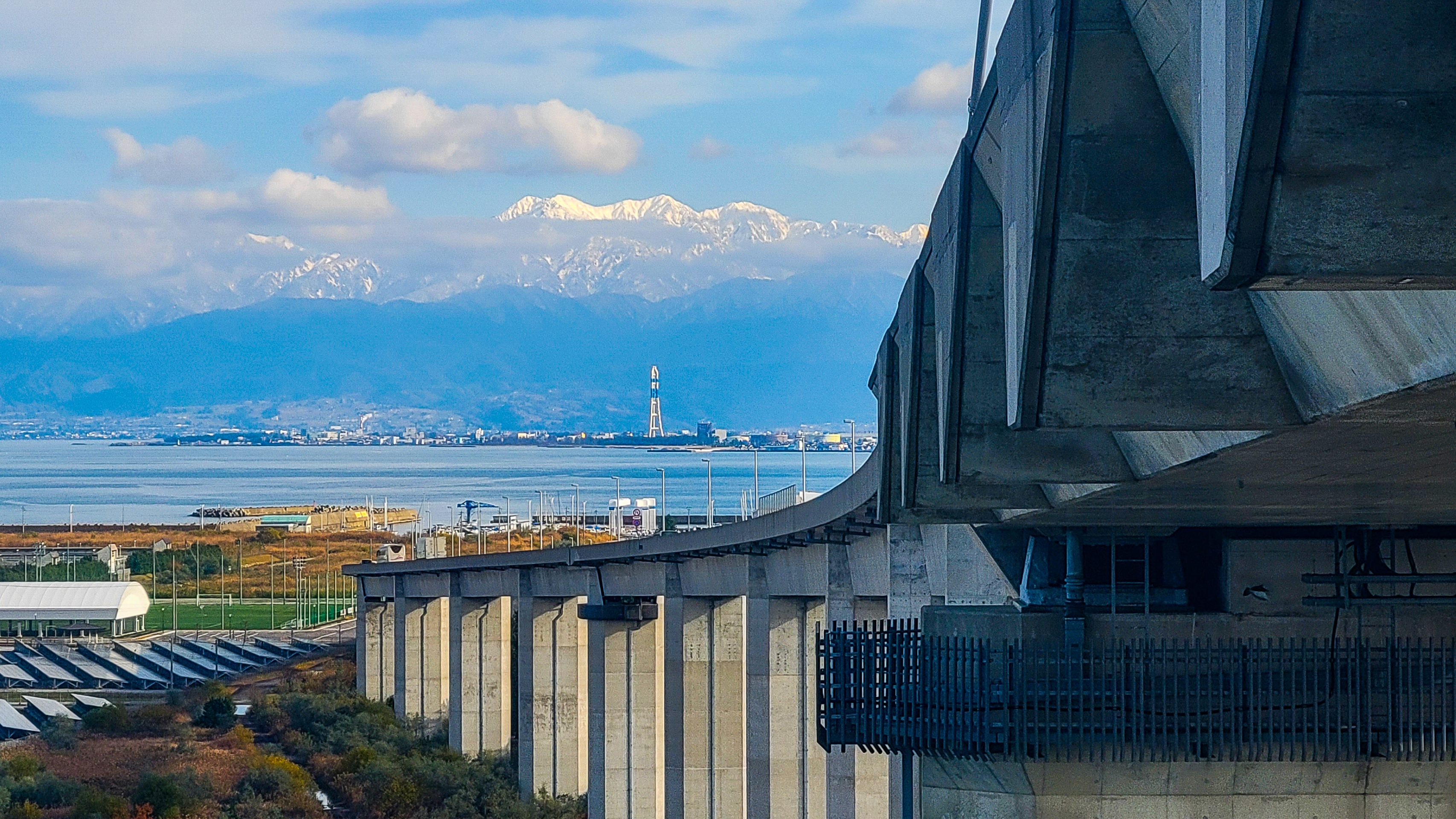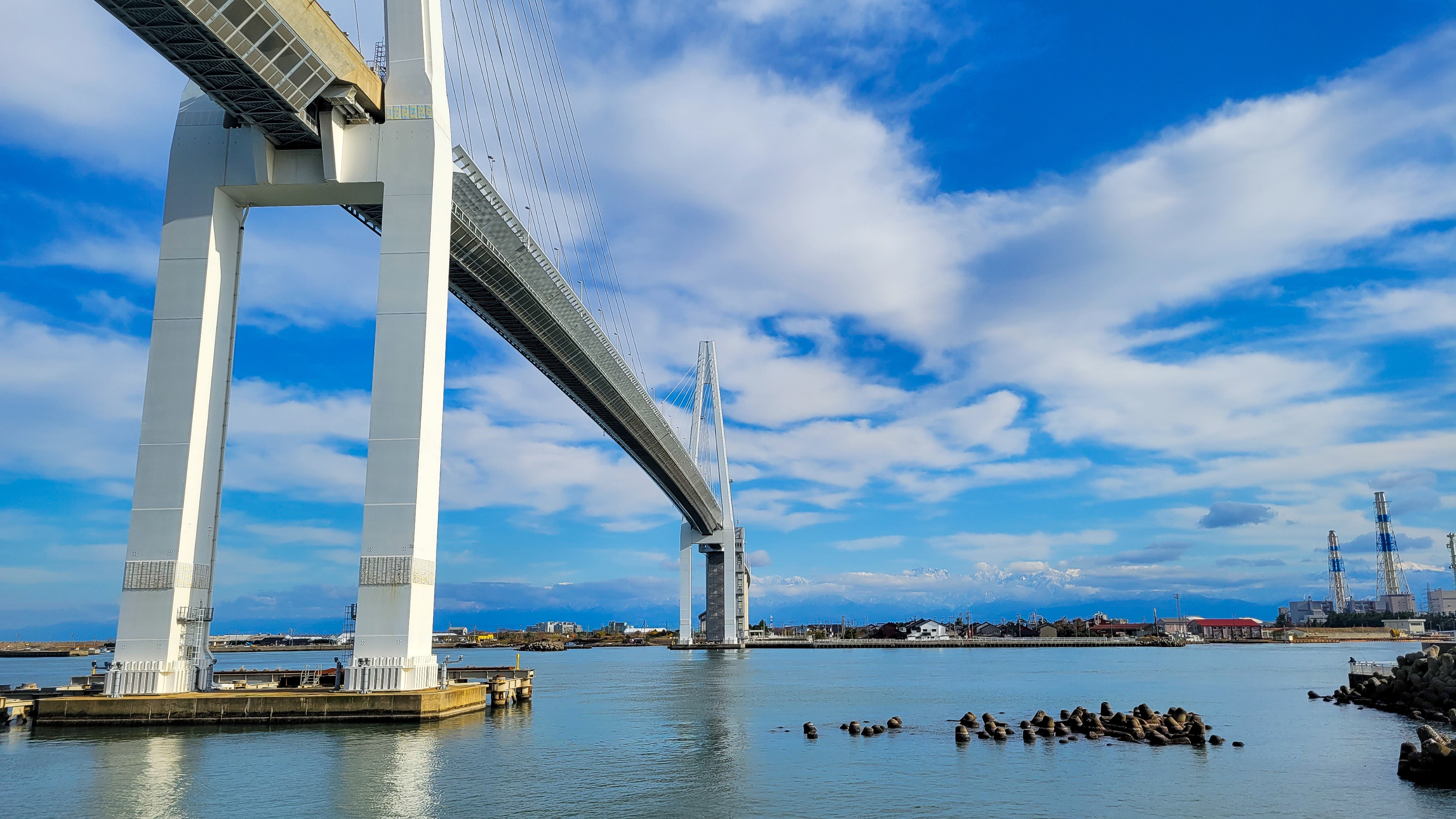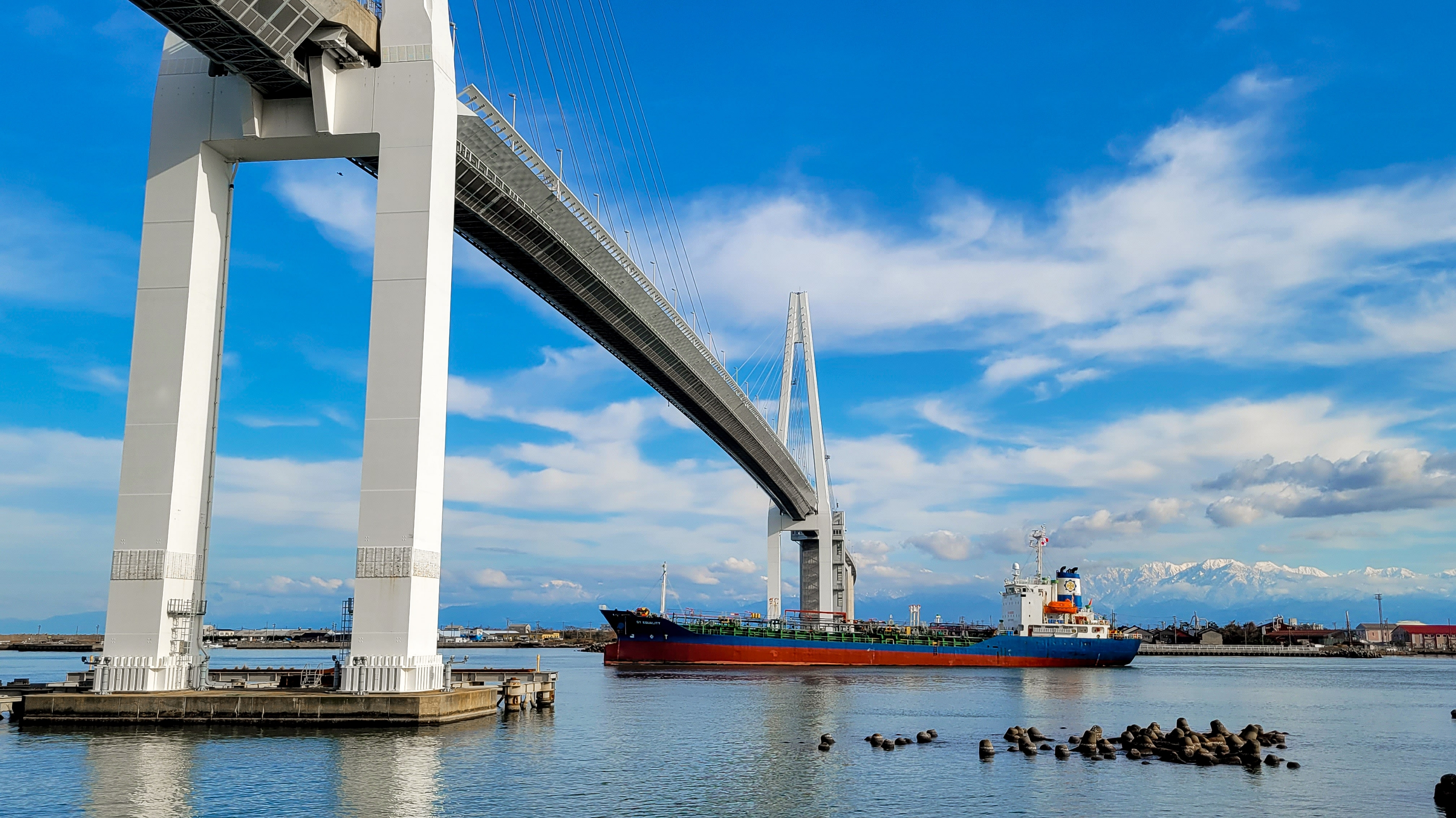 新湊大橋が高く作られているのは、内側に富山新港があり、大きな船が通るからですね。