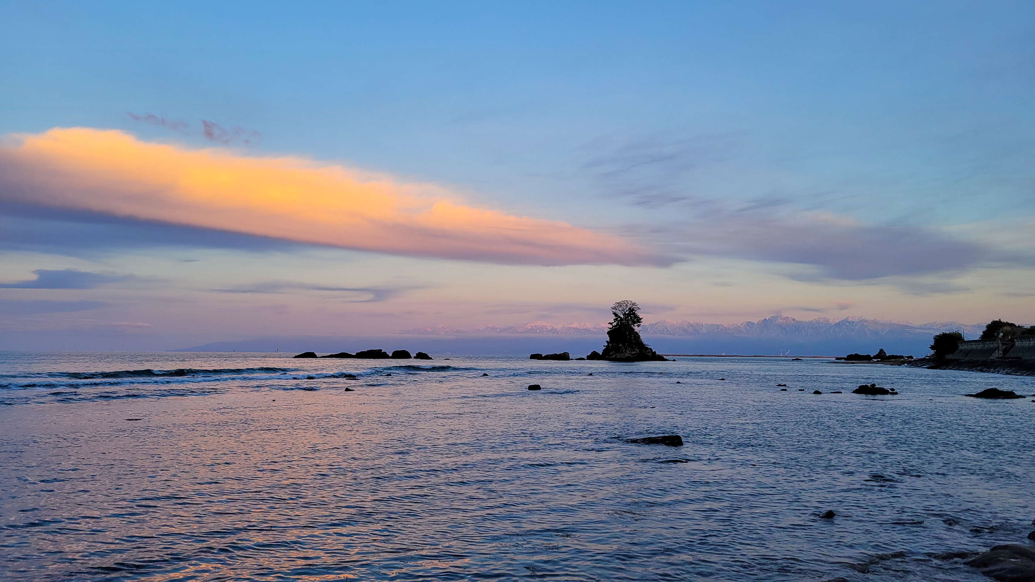 これから期待できそうですね。午前中に通過した雨晴海岸を目指します。