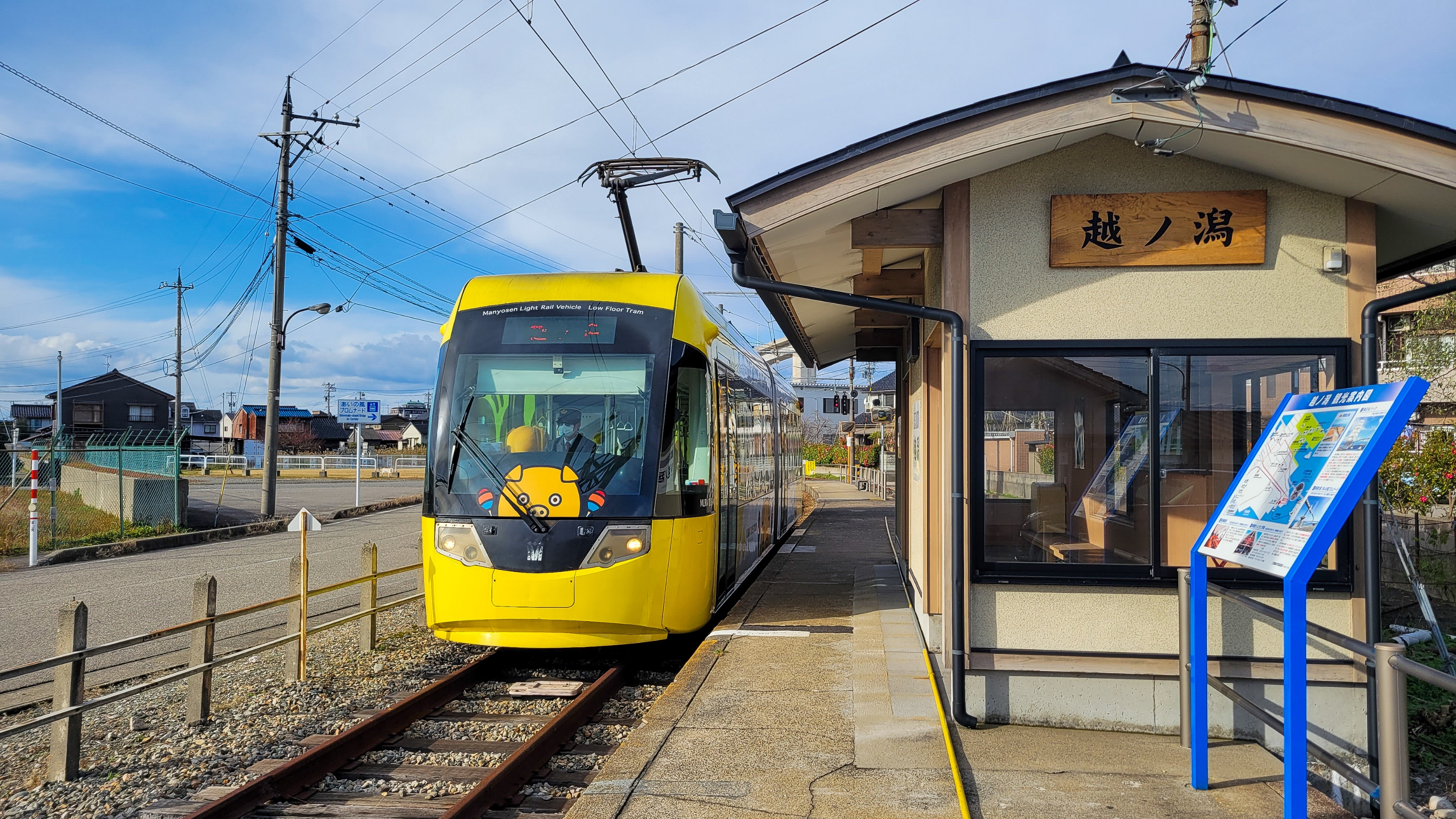 万葉線の終着駅の越ノ潟駅から高岡市内へ戻ります。