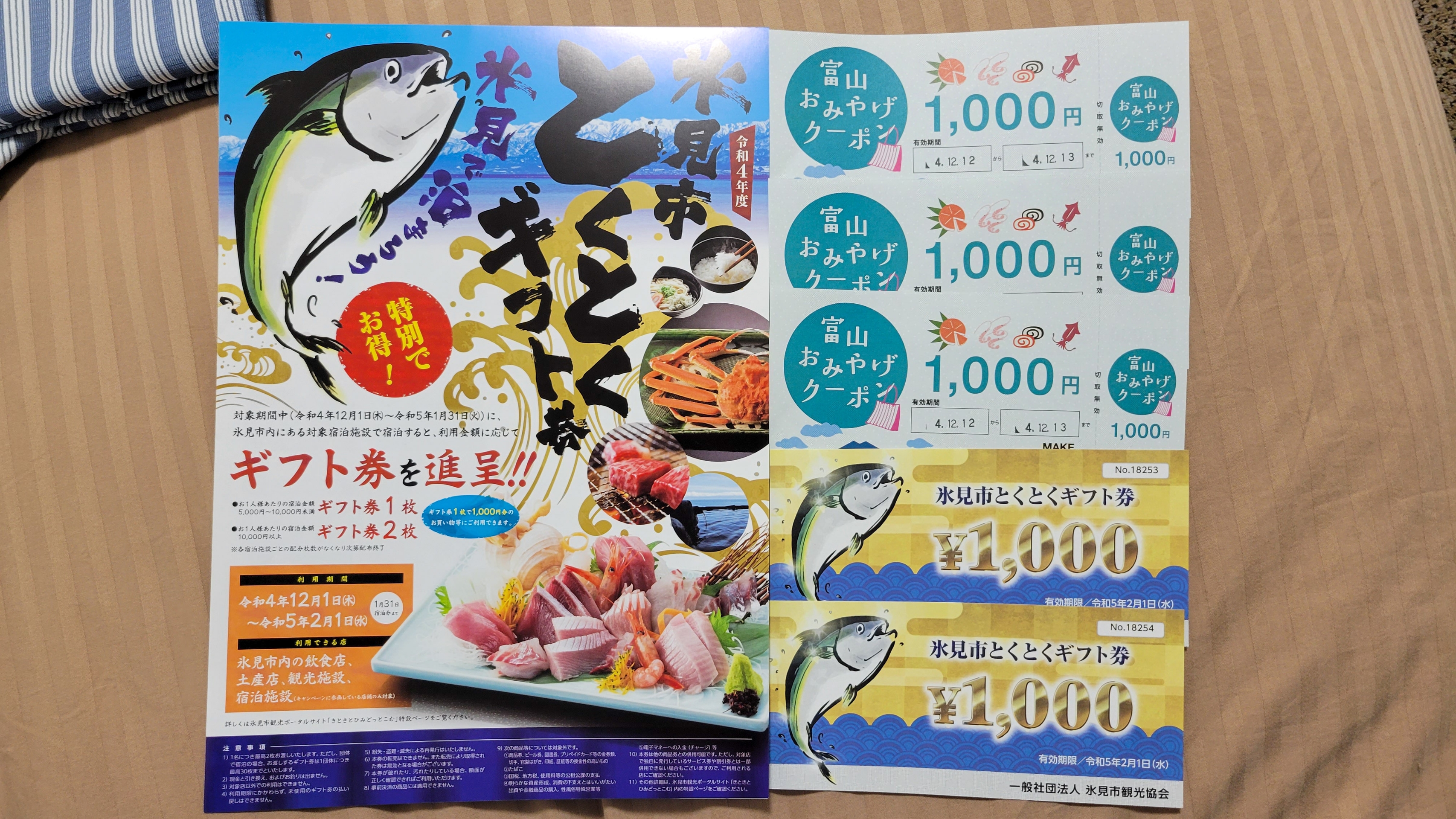 12月からの氷見市のキャンペーンで、2,000円のクーポンがもらえました。
