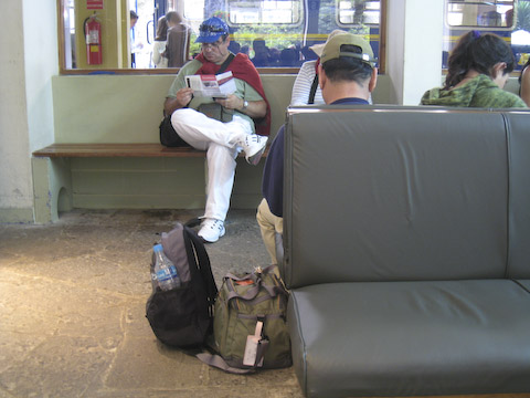 椅子の横にかばん置いたまま寝込んでます。