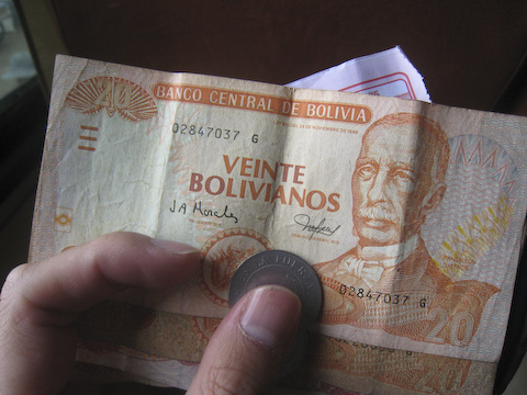 ボリビアのお金に両替。