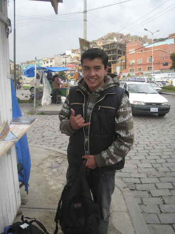 17歳の彼は、ラパスに大学にいくために、移動しており、